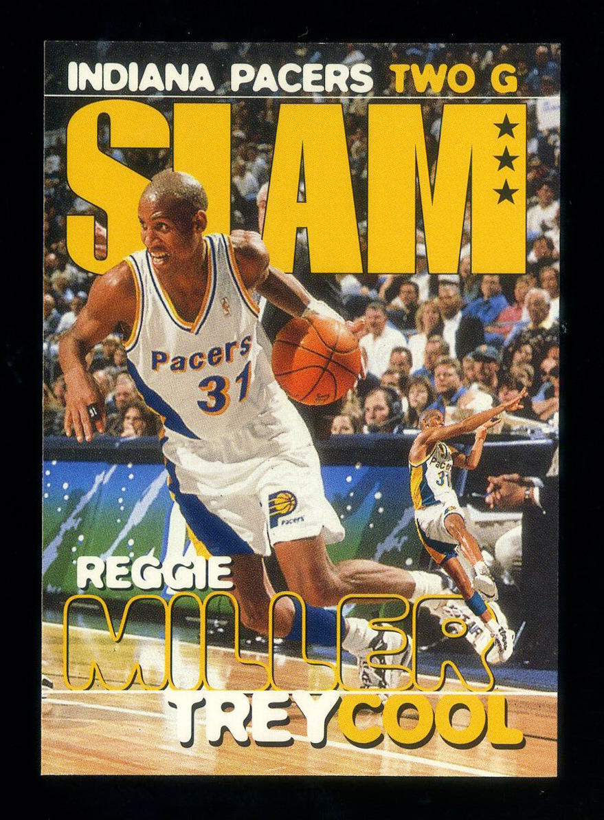 1996-97 Hoops SLAM Magazine Reggie Miller步行者名宿雷杰米勒传统纸媒巅峰经典杂志封面设计移植TREYCOOL最酷三分