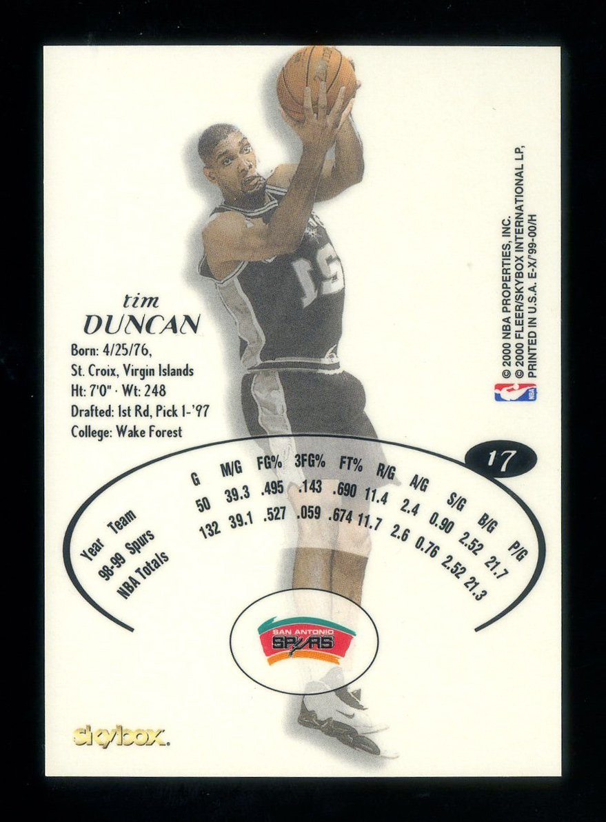 1999-00 EX Tim Duncan蒂姆邓肯马刺石佛经典多层塑料复合常规卡史上最强大前
