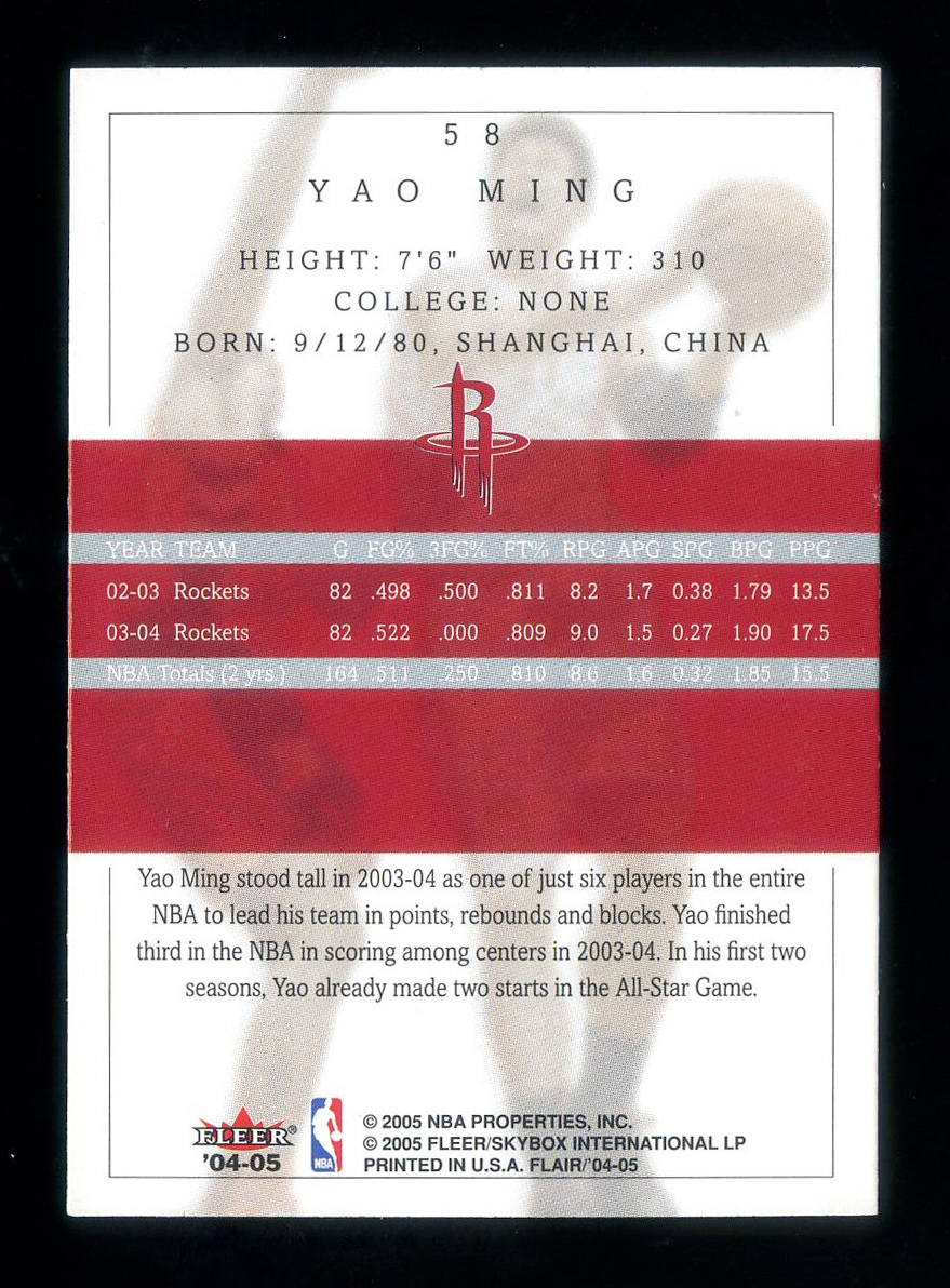 2004-05 Flair 姚明高端系列常规卡中国人NBA最高成就篮协前主席