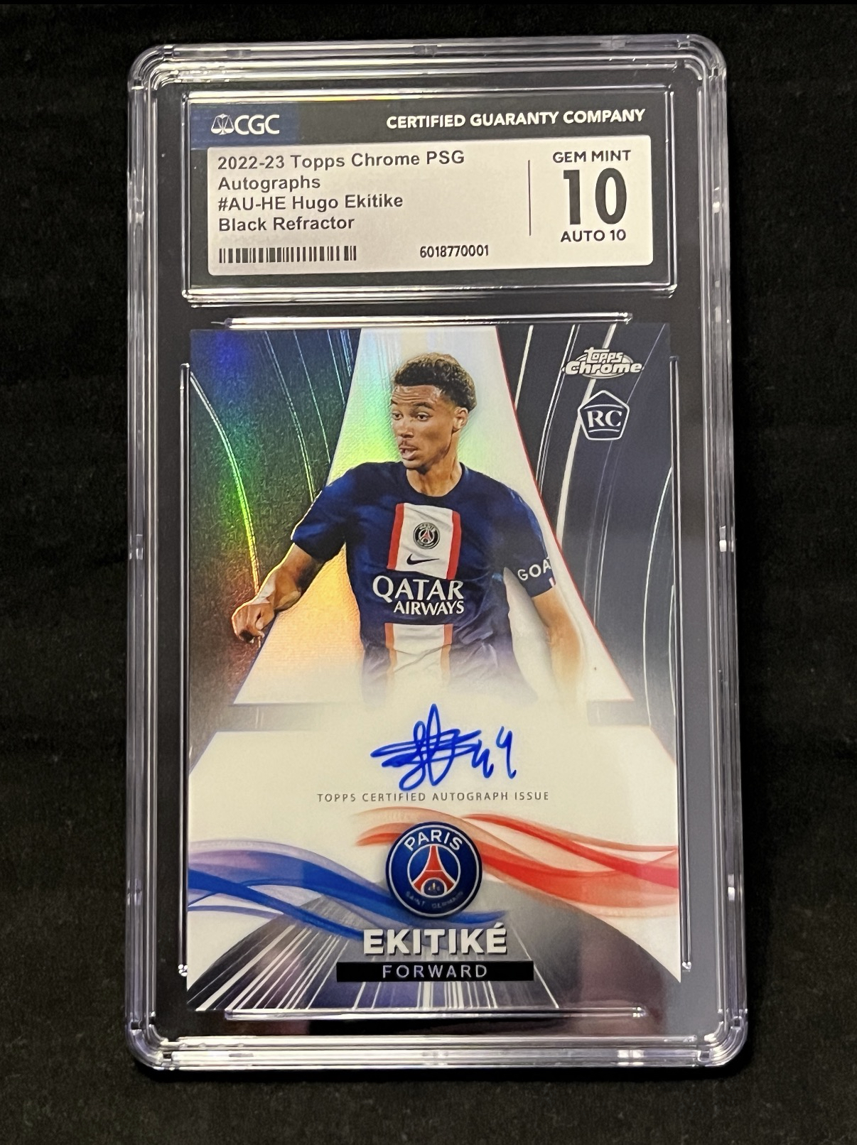 2022-23 Topps Chrome Hugo Ekitike RC 利物浦 埃基蒂克 大巴黎高端队盒 新秀 黑折卡签 10/25编 CGC双十 10/10 POP1