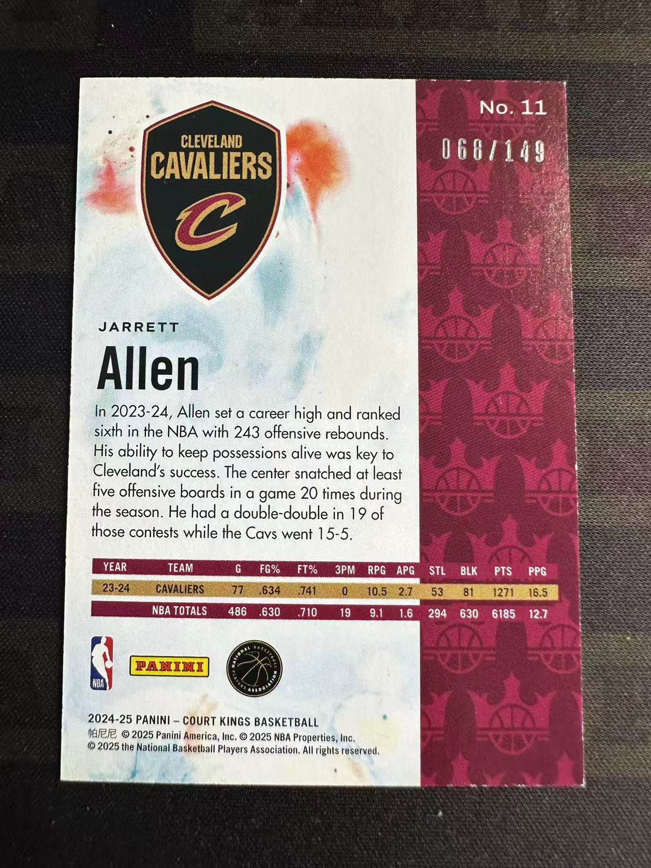 2024-25 Panini Court Kings Jarrett Allen #11 贾莱特 油画 红平行 阿伦 骑士 149编