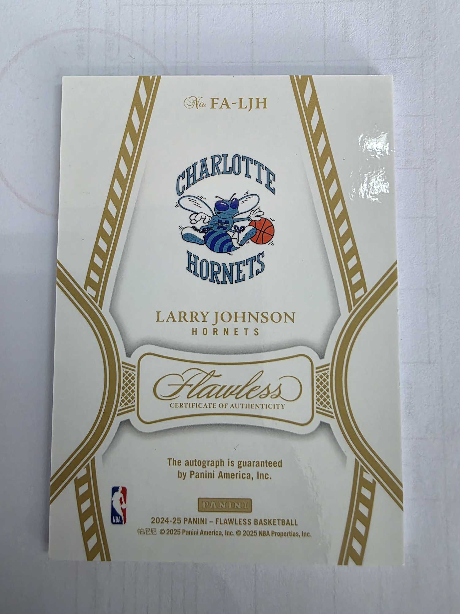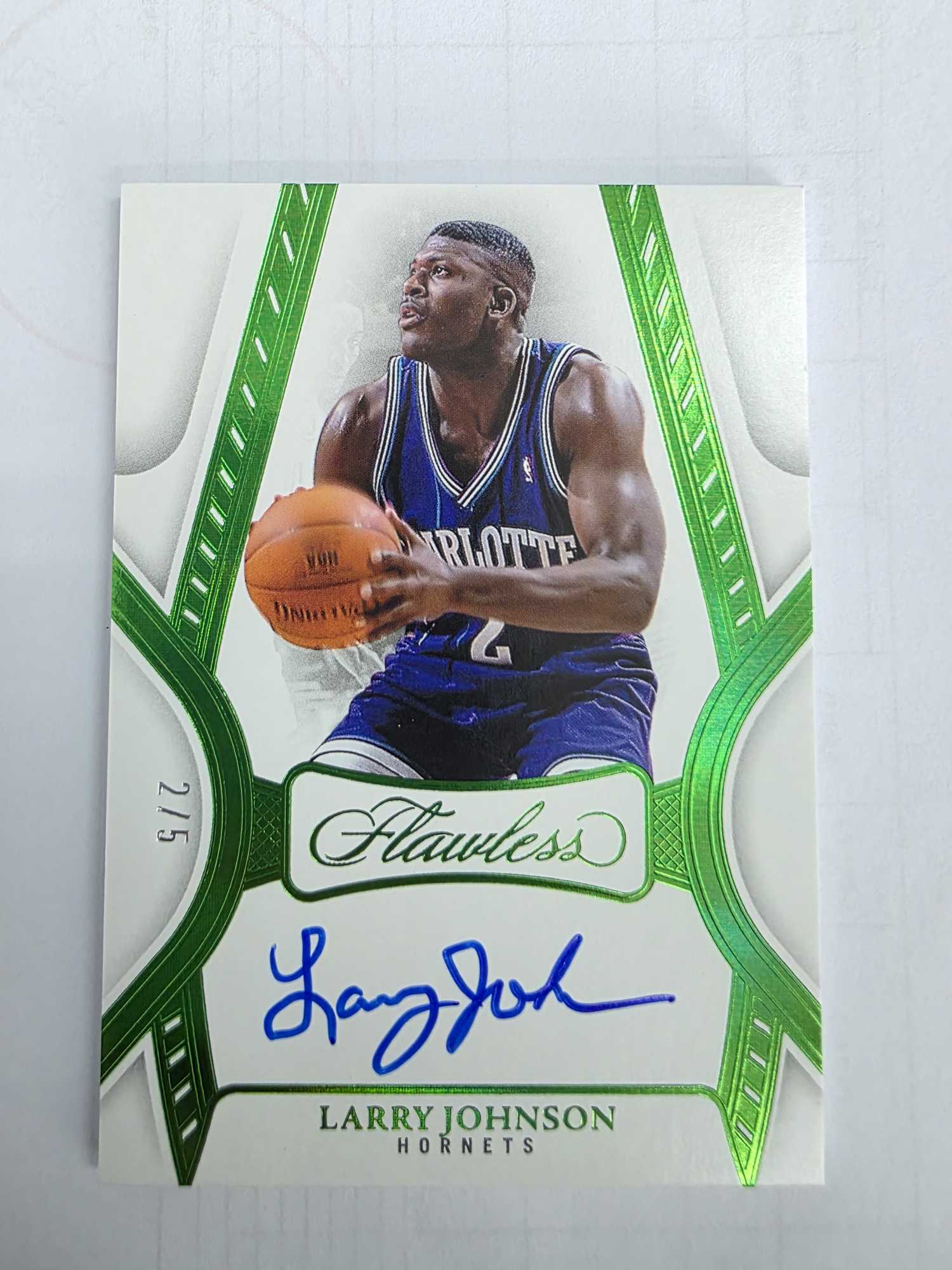 2024-25 Panini Flawless Larry Johnson 手提 黄蜂 拉里 约翰逊 大妈 尼克斯名宿 卡签 5编绿平行 2/5同背 FA 墨迹湛蓝 卡品几乎完美仅小点如图