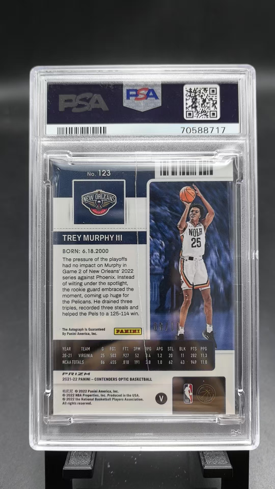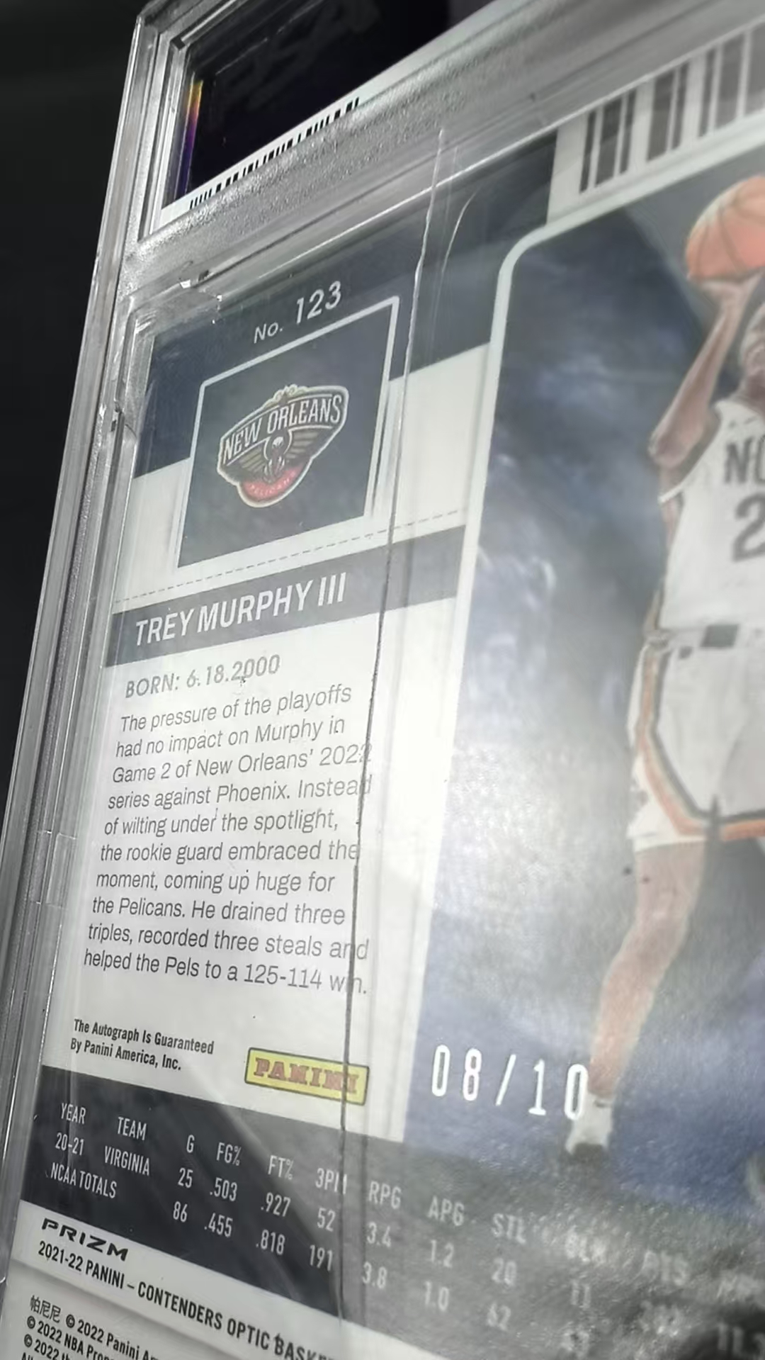2021-22 Panini Contenders Trey Murphy III RC 【EC】 球票 鹈鹕 特雷 墨菲三世 新秀 签字 卡签 8/10编 折射 金折 PSA10 包包6