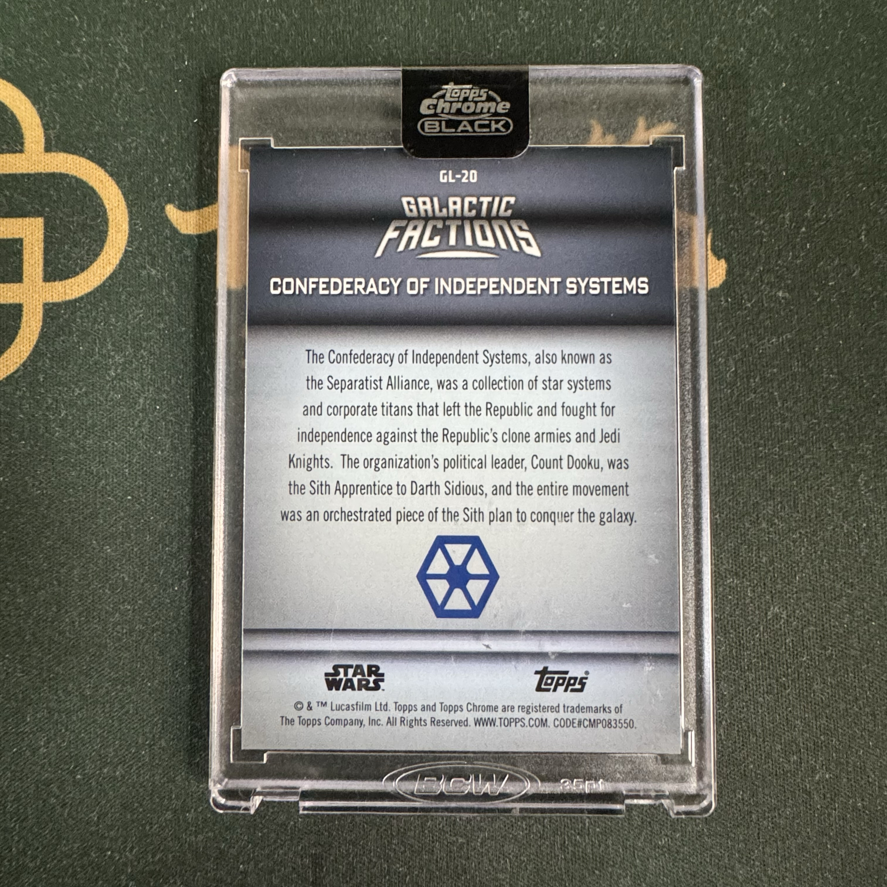 2025 Topps Star Wars 星战 【十三笔】星球大战 Black黑盒 银河系派别特卡 #GL-‌20 独立星系邦联  01/99编 首编  原封砖 卡品如图(My)2