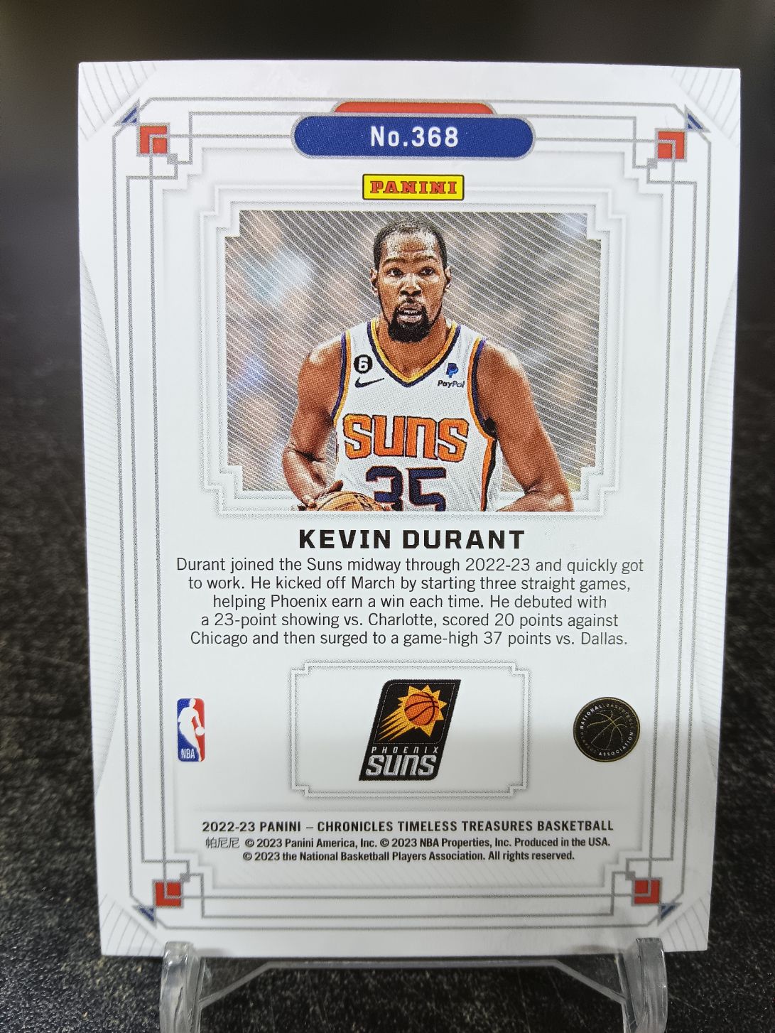 【浩行拍卖 截标预付82%】2022-23 panini Chronicles Timeless Treasures Kevin Durant 编年史 小铁盒 太阳 凯文 杜兰特 死神 蓝平行 36/99编 瑕疵看图「便节」1110A01牟
