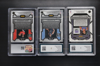 关于卡品问题,请录制并保留开箱视频,开箱视频作为维权凭证,如无开箱视频无法配合维权。有明显瑕疵,划痕,压痕等问题会注明并有细节图,特殊卡种如折射、镜面卡、聚光灯很难有非常完美的卡品,如您追求品相完美请直接购买评级卡。厚卡多数会有轻微的白边白角现象属于通行品,瑕疵明显的都会注明。