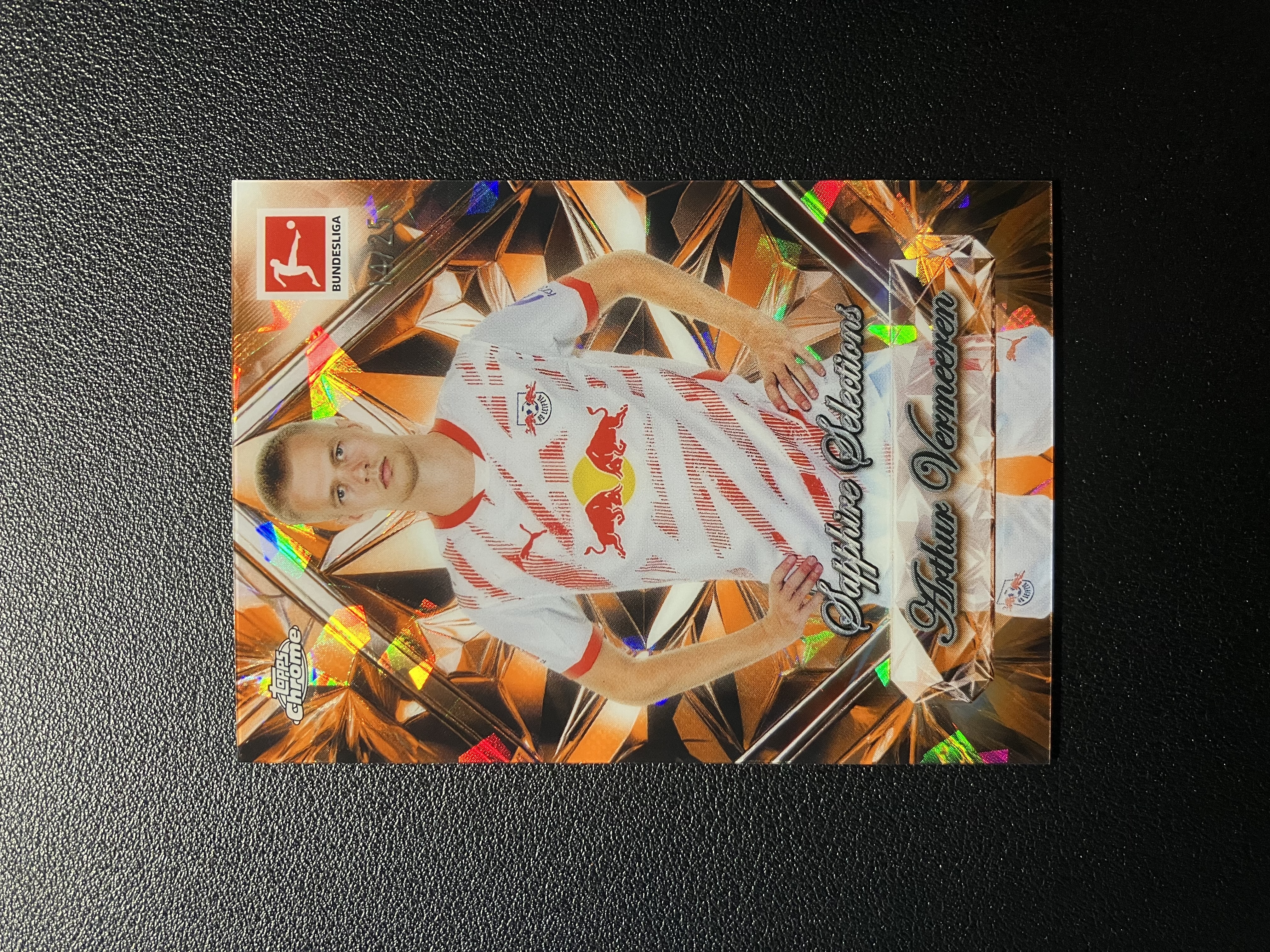 2025 Topps Chrome Arthur Vermeeren 德甲TC蓝宝石 阿蒂尔-费尔梅伦 14/25编 橙折 蓝宝石精选特卡 大比例 未来之星 比利时 莱比锡红牛 卡品如图 A115