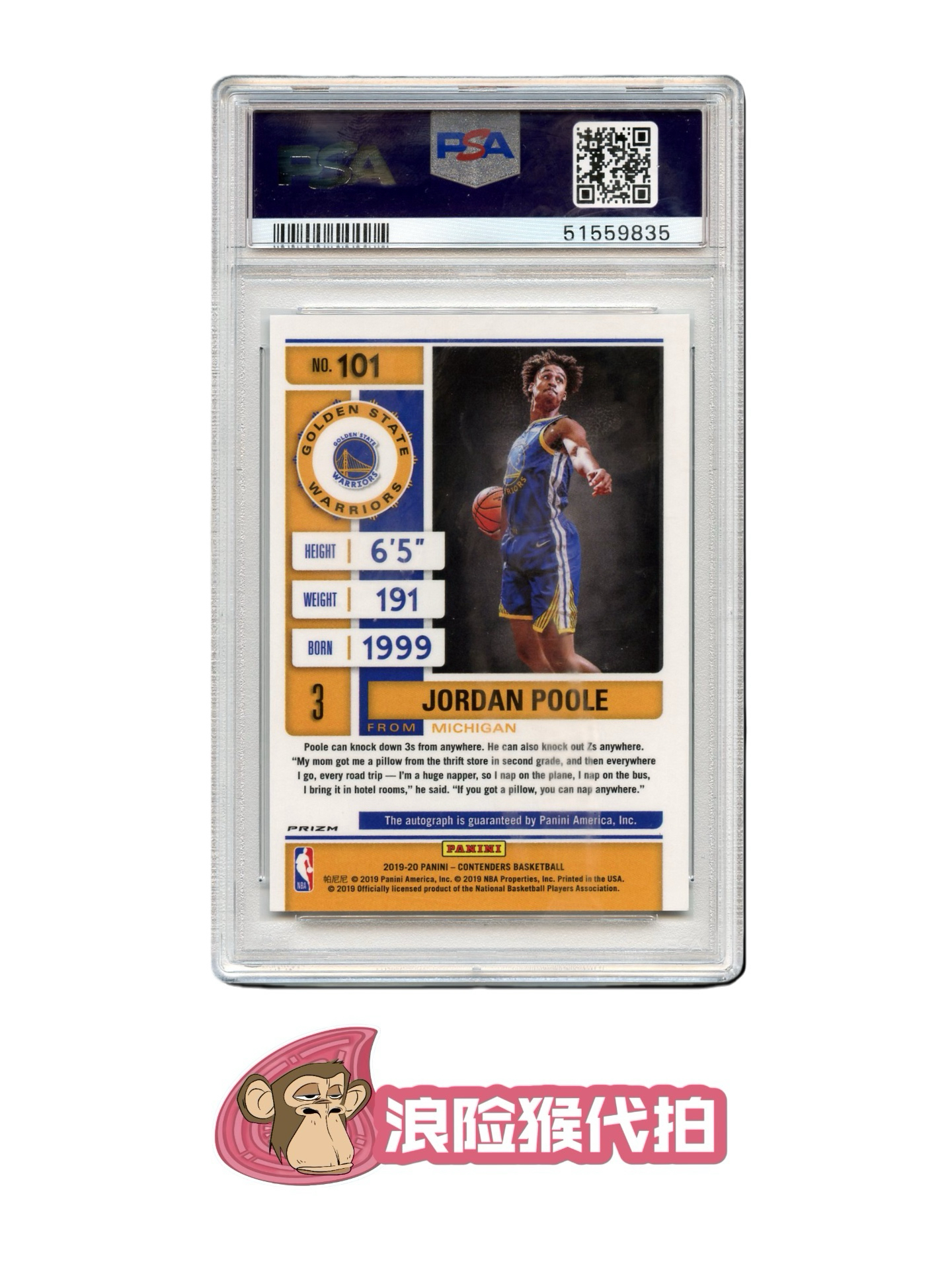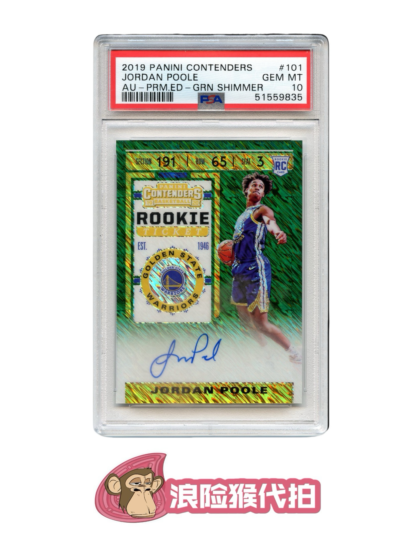 2019-20 Panini Contenders Jordan Poole RC 球票 勇士 新秀RC 乔丹 普尔 绿 shimmer 签字 卡签 PSA 卡品 10分 专收必备 库里队友