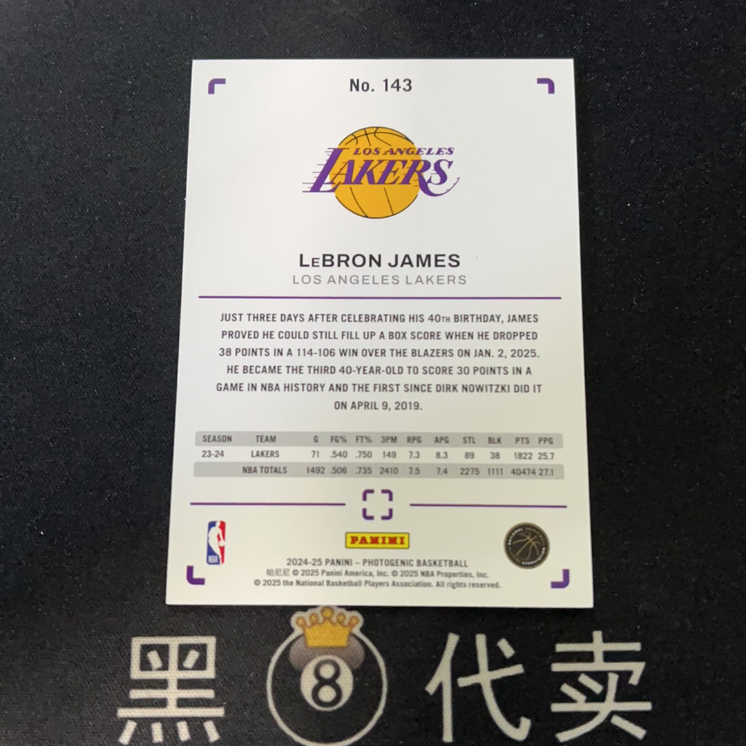 17【黑8代卖】2024-25 Panini Photogenic 上镜 Lebron James 勒布朗 詹姆斯 老詹 布朗尼 父子同台 经典选图 base 卡品如图【Argus-3】