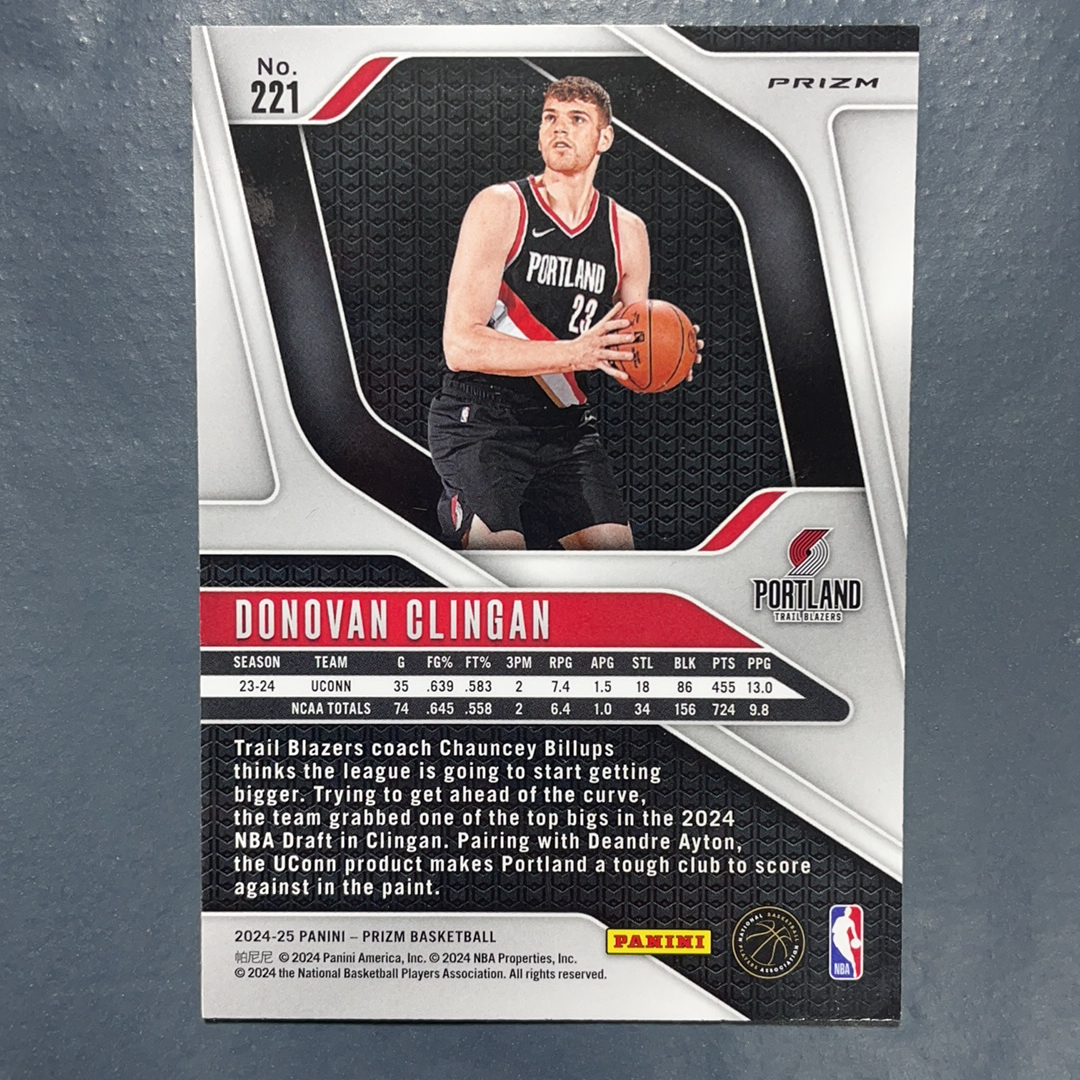 2024-25 Panini Prizm Donovan Clingan RC Prizm 多诺万 克林根 RC 新秀 银折 开拓者