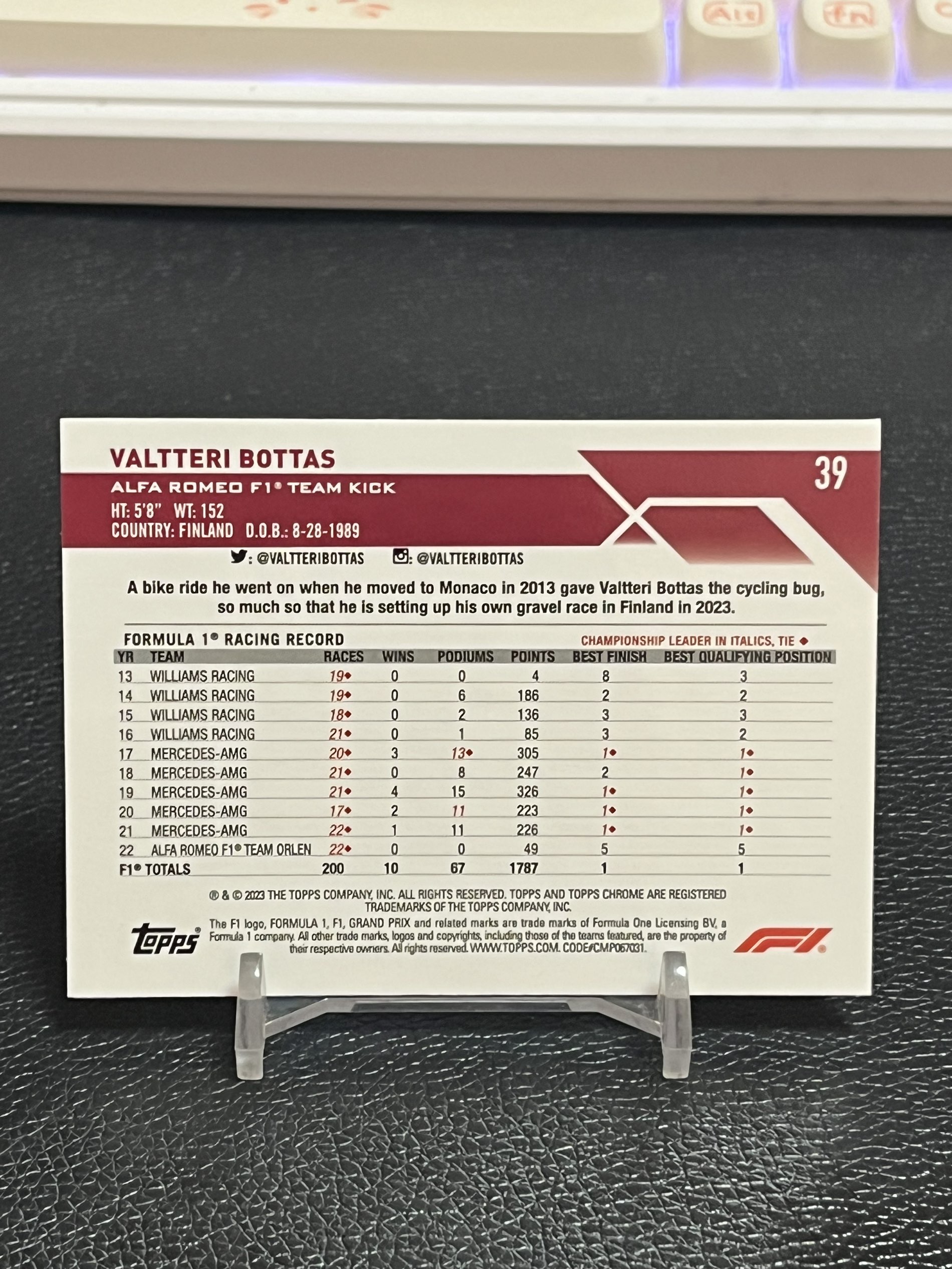 【浩行拍卖 截标预付82%】2023 topps chrome F1 valtteri bottas 瓦尔特里 博塔斯 金棋盘格折 折射 25/50编 周冠宇队友 阿尔法罗密欧 专收必备 瑕疵看图「紫璀」1110F02祺