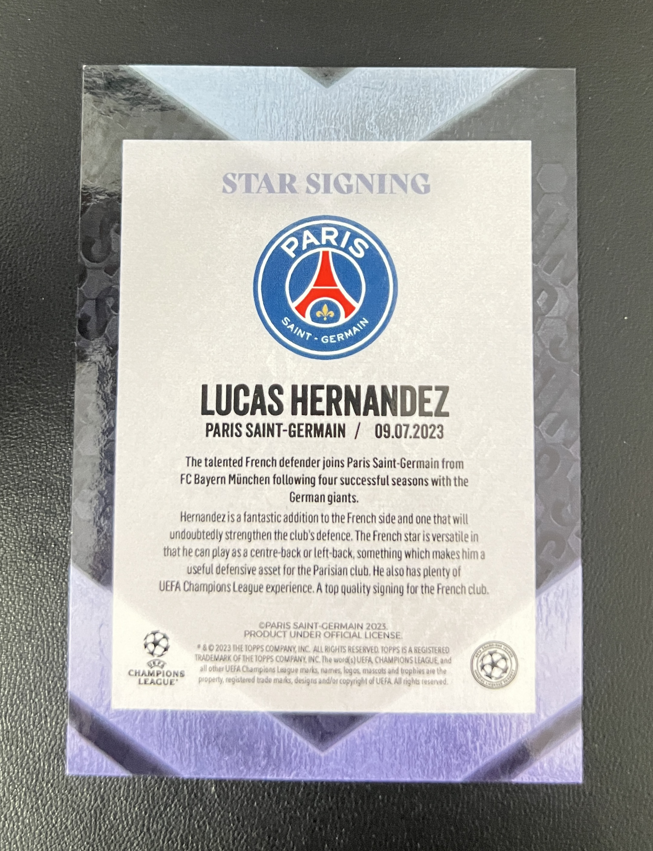 2023 Topps UEFA Champions League Lucas Hernández 夏转盒 巴黎圣日耳曼 折射 签字 99编 卢卡 埃尔南德斯 Lucas Hernandez