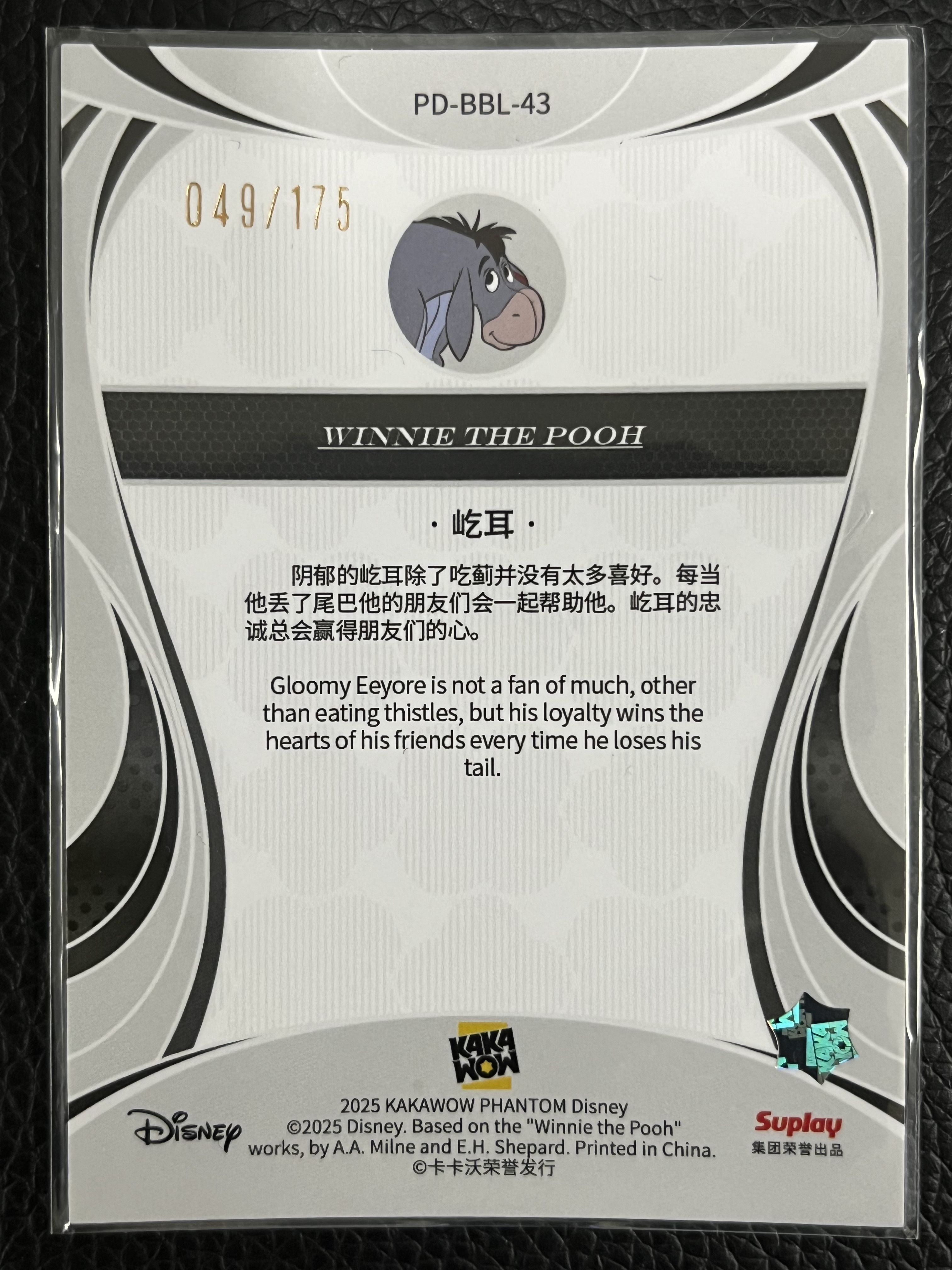 卡卡沃 2025 KAKAWOW PHANTOM 迪士尼系列收藏卡 基础卡-蓝 西GXX(11A)49/175编 卡号43 屹耳 Eeyore