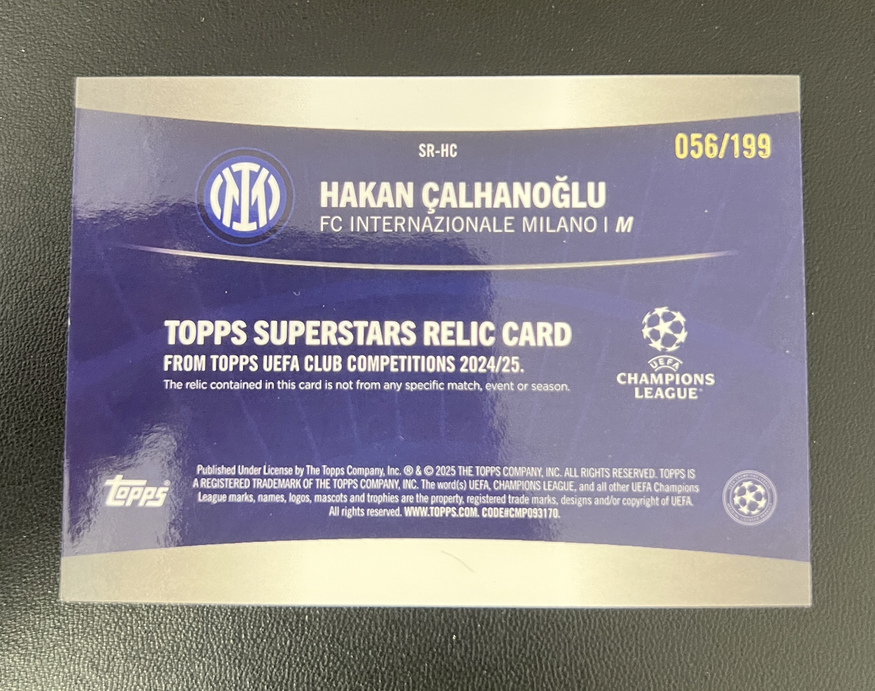 2025 Topps UCC Hakan Calhanoglu 恰尔汗奥卢 国米 绿折 199编 物料 收藏必备