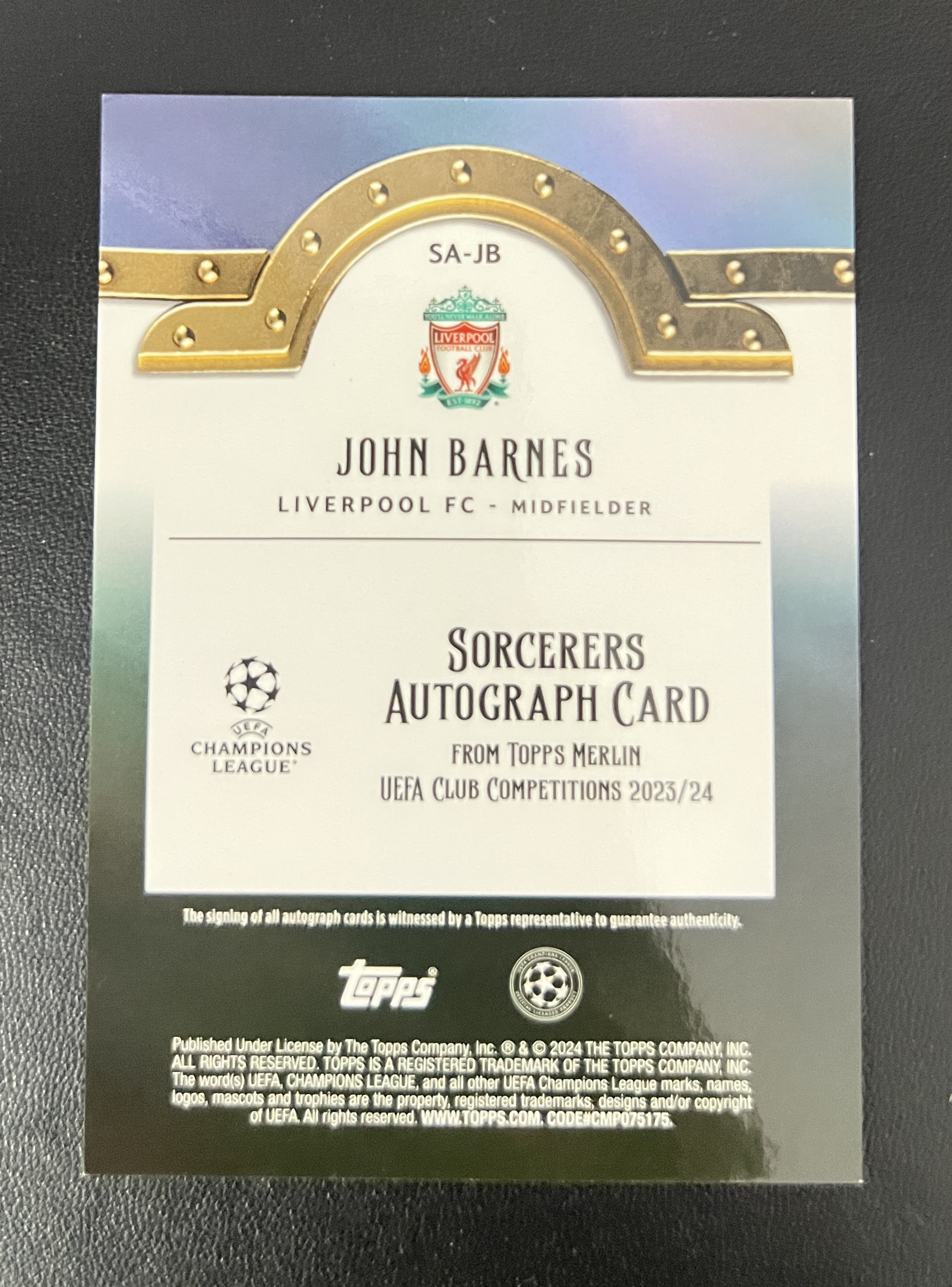 2024 Topps UEFA Champions League John Barnes 利物浦 约翰 巴恩斯 99编 银Mojo折 折射 签字 签名 巫师特卡