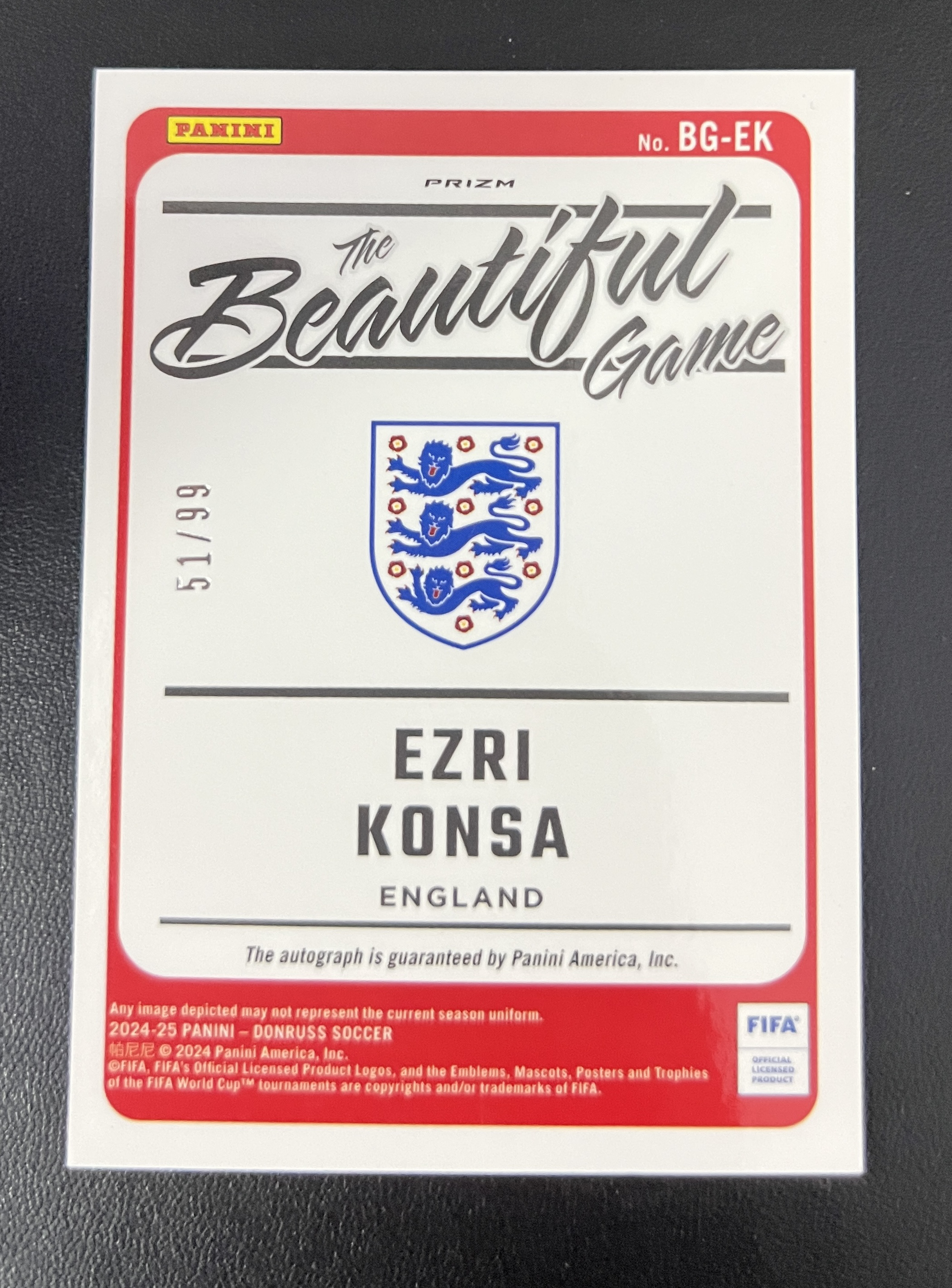 2024-25 Panini Donruss Ezri Konsa O版 孔萨 英格兰 维拉 龙鳞 龙纹 签 99编 SS签 完美墨迹卡品细节如图