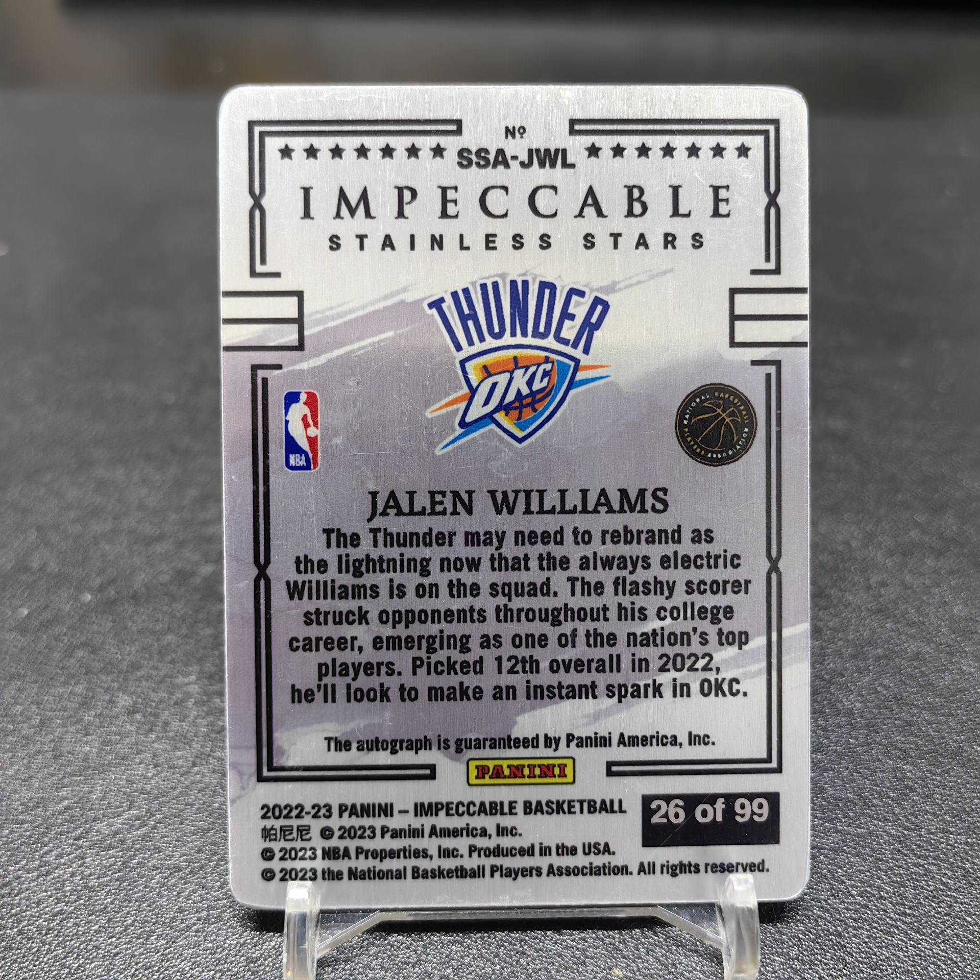 【浩行拍卖 截标预付82%】2022-23 Panini Impeccable jalen williams 小真金 雷霆 杰伦 威廉姆斯 新秀 RC 签字 卡签 铁板 26 of 99 26/99编 专收必备「记存」1111D07龘