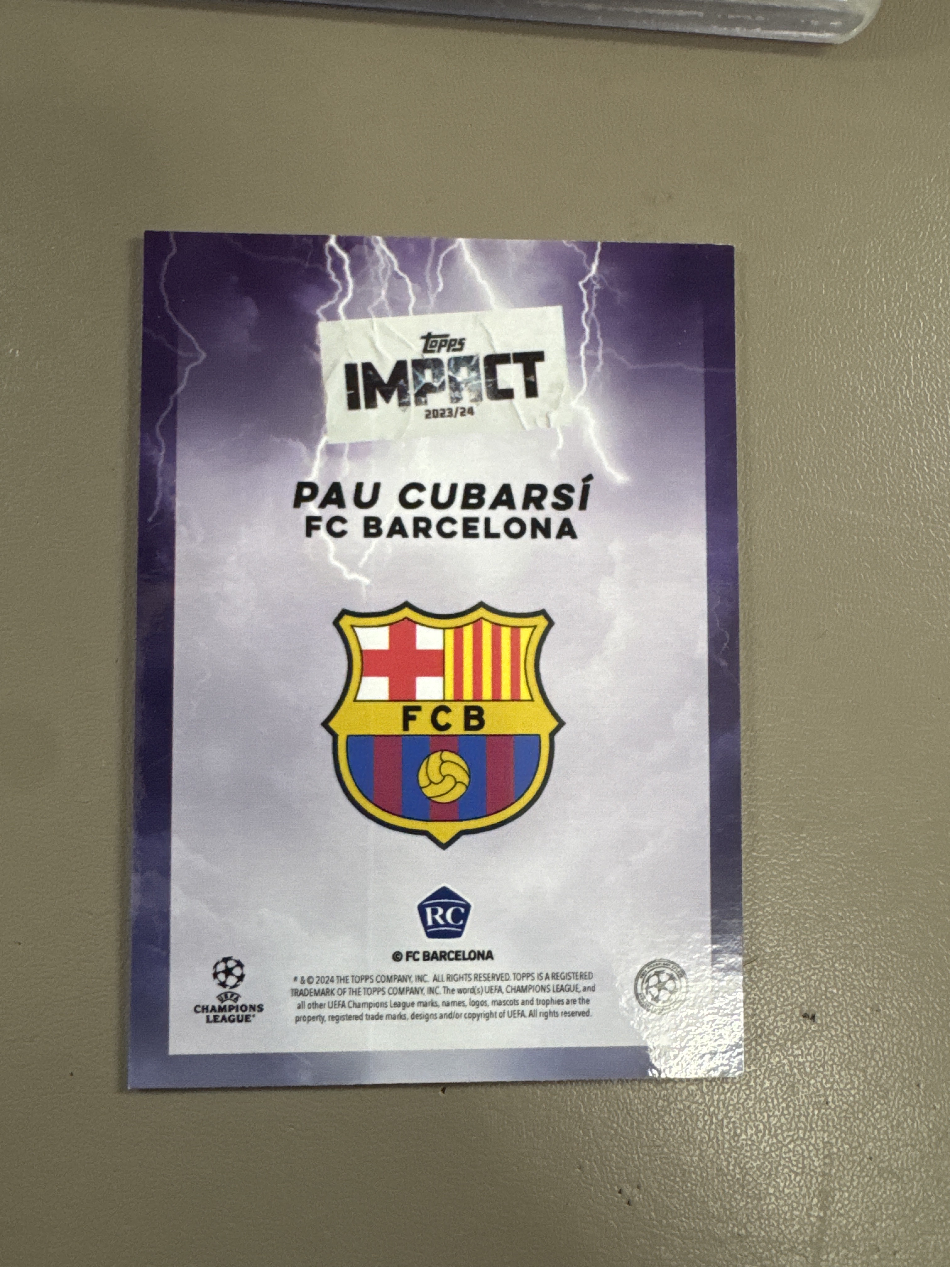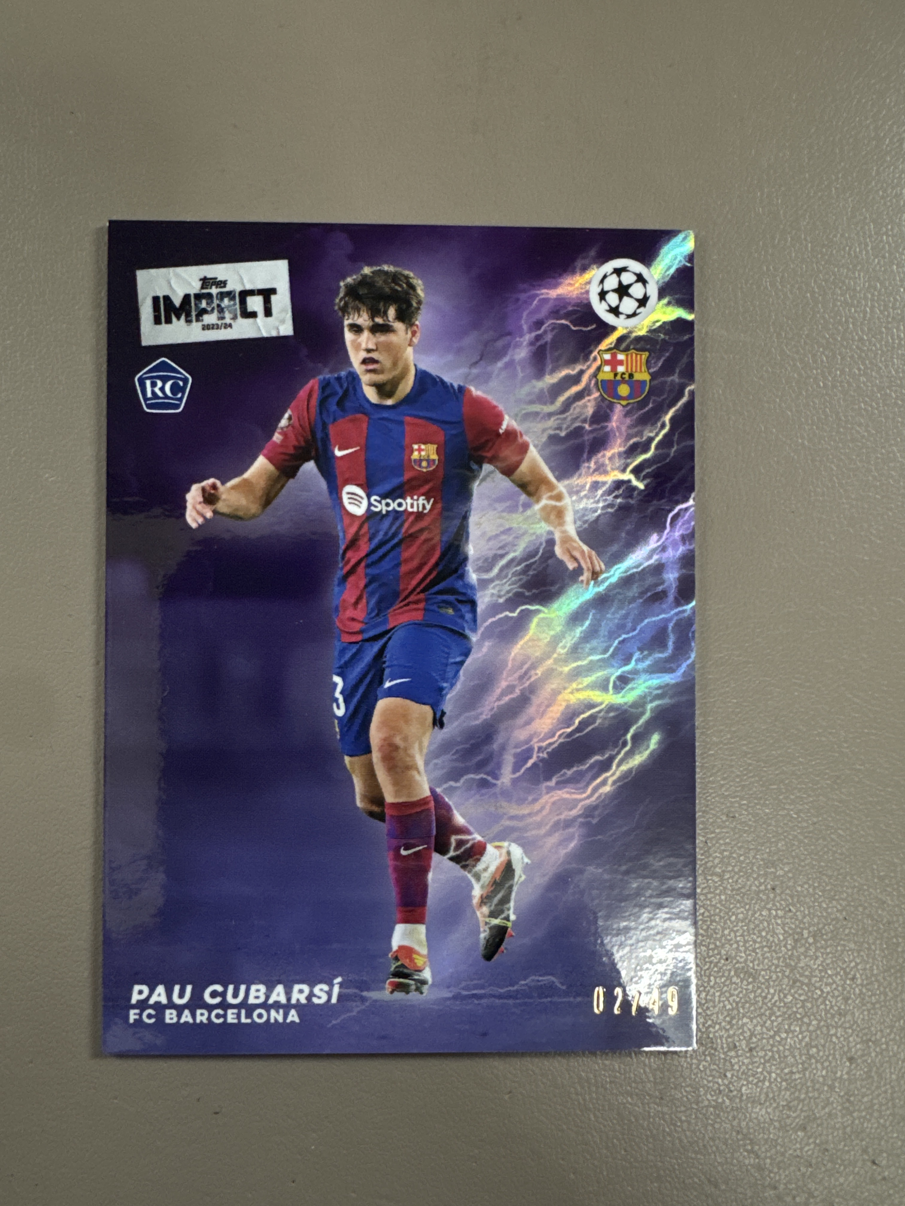 2024 Topps 欧冠冲击盒 pau cubarsi RC 库巴西 rc 新秀 2/49编 低编 同背 紫闪电 紫镭射 巴塞罗那 西班牙 巴萨 极高收藏价值 卡量稀少