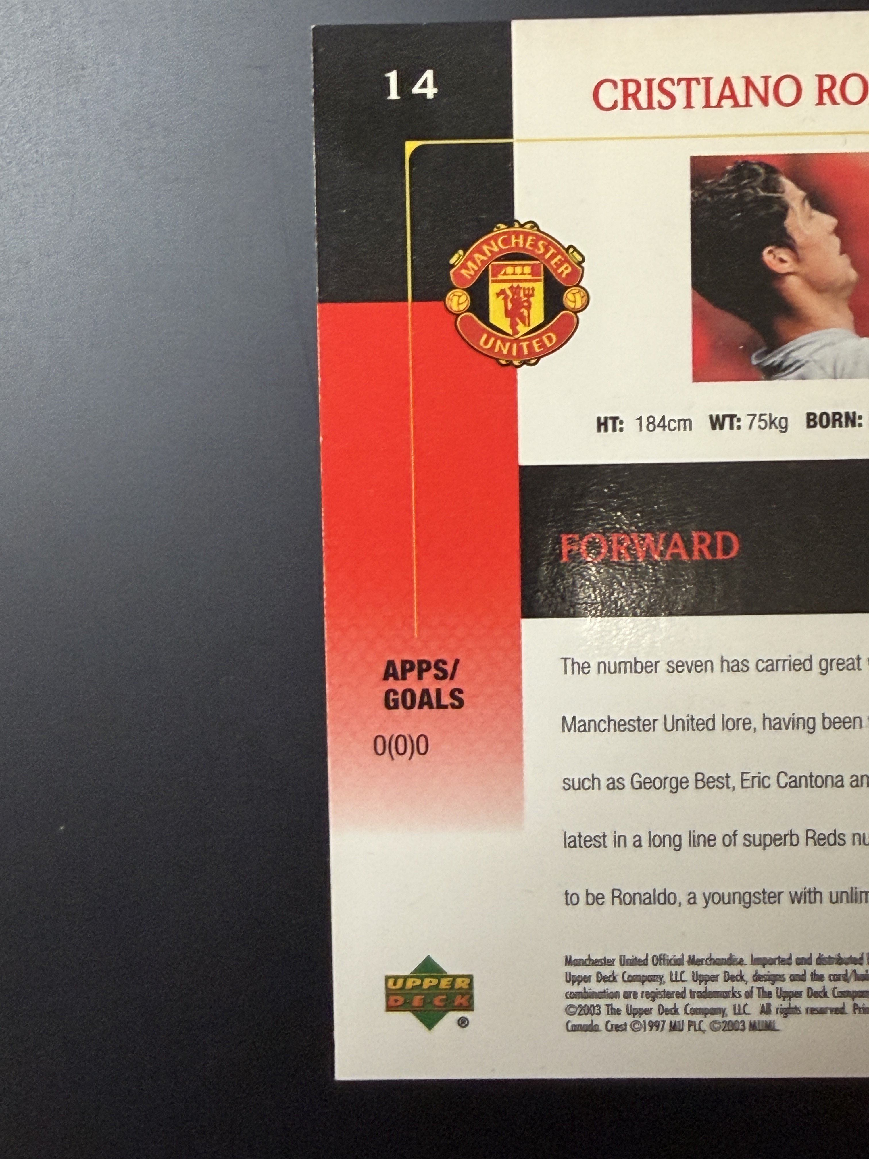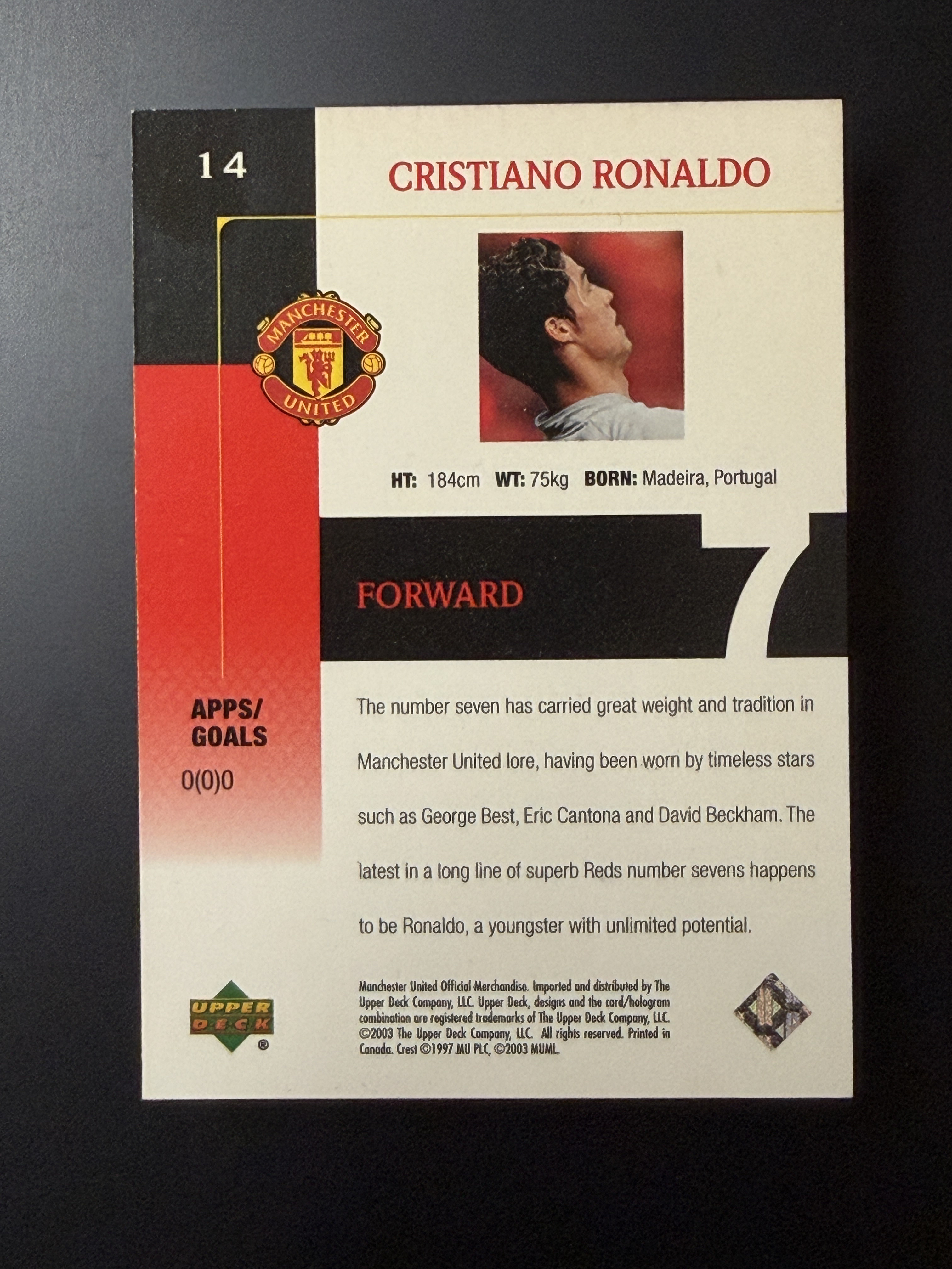 2003 Upper Deck SP Cristiano Ronaldo 【未来拍卖】 UD C罗 罗纳尔多 新秀卡 最正最早的新秀卡 卡品很好 细节图已拍 可以搏高分 曼联 葡萄牙 皇马 尤文 梅西