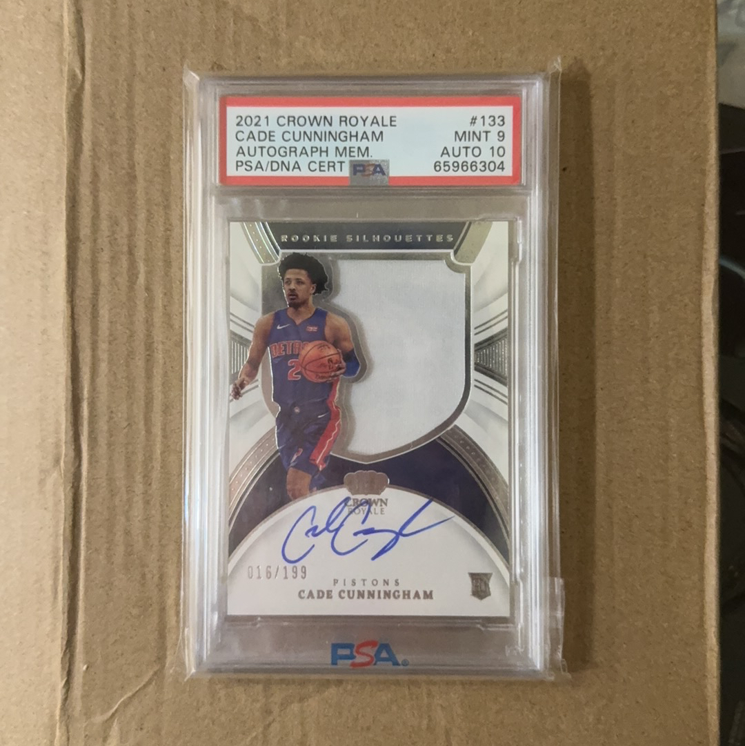 2021-22 Panini Crown Royale Cade Cunningham RC 【未来拍卖】皇冠 RC新秀 活塞 CC 康宁汉姆 199编 剪影 球衣 签字 RJA 卡签 PSA9分10