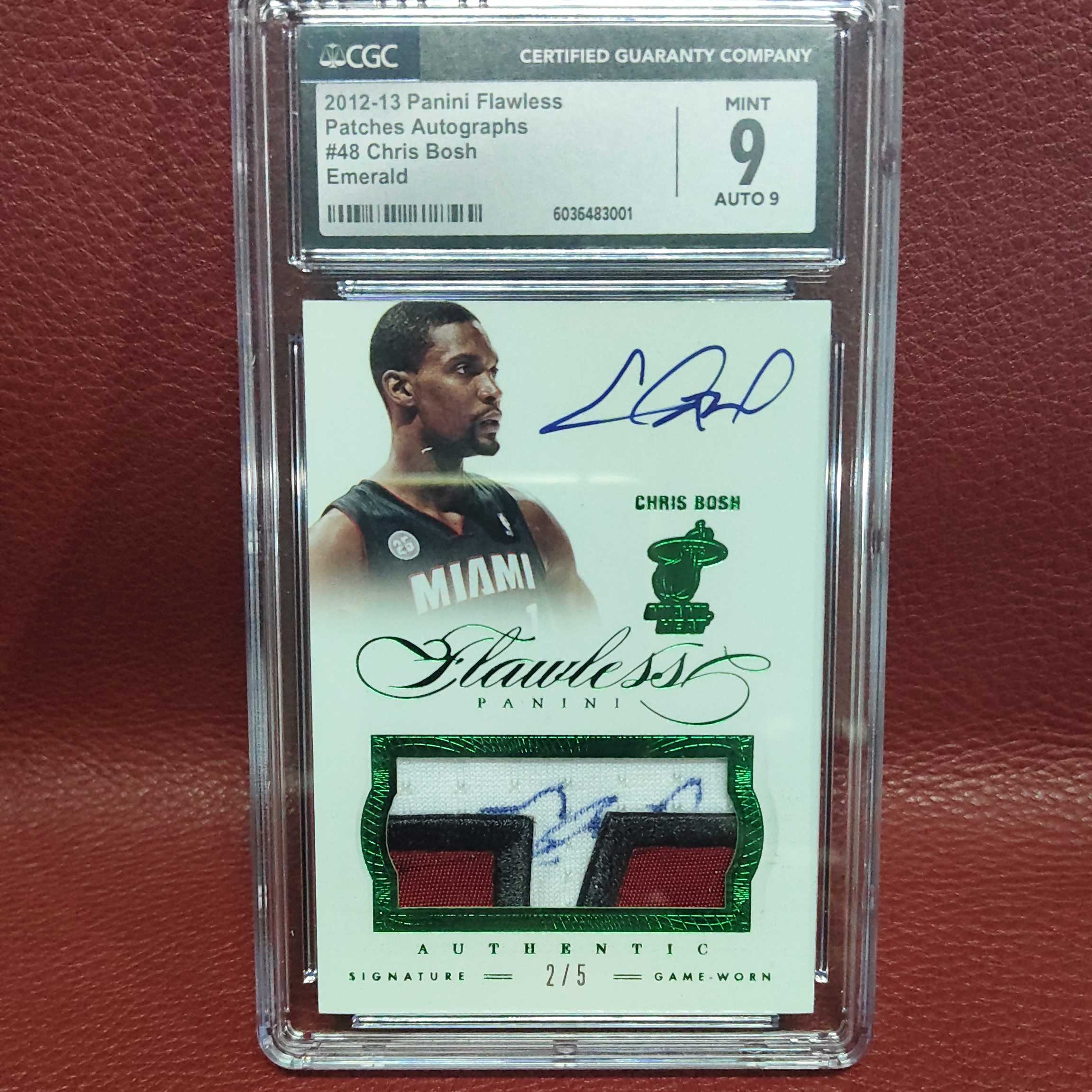 2012-13 Panini Flawless Chris Bosh 手提 热火 克里斯 波什 詹姆斯 韦德 三巨头 签字 卡签 patch签 双签 cgc评级 卡品9 签字9 绿平行 5编 介意勿拍