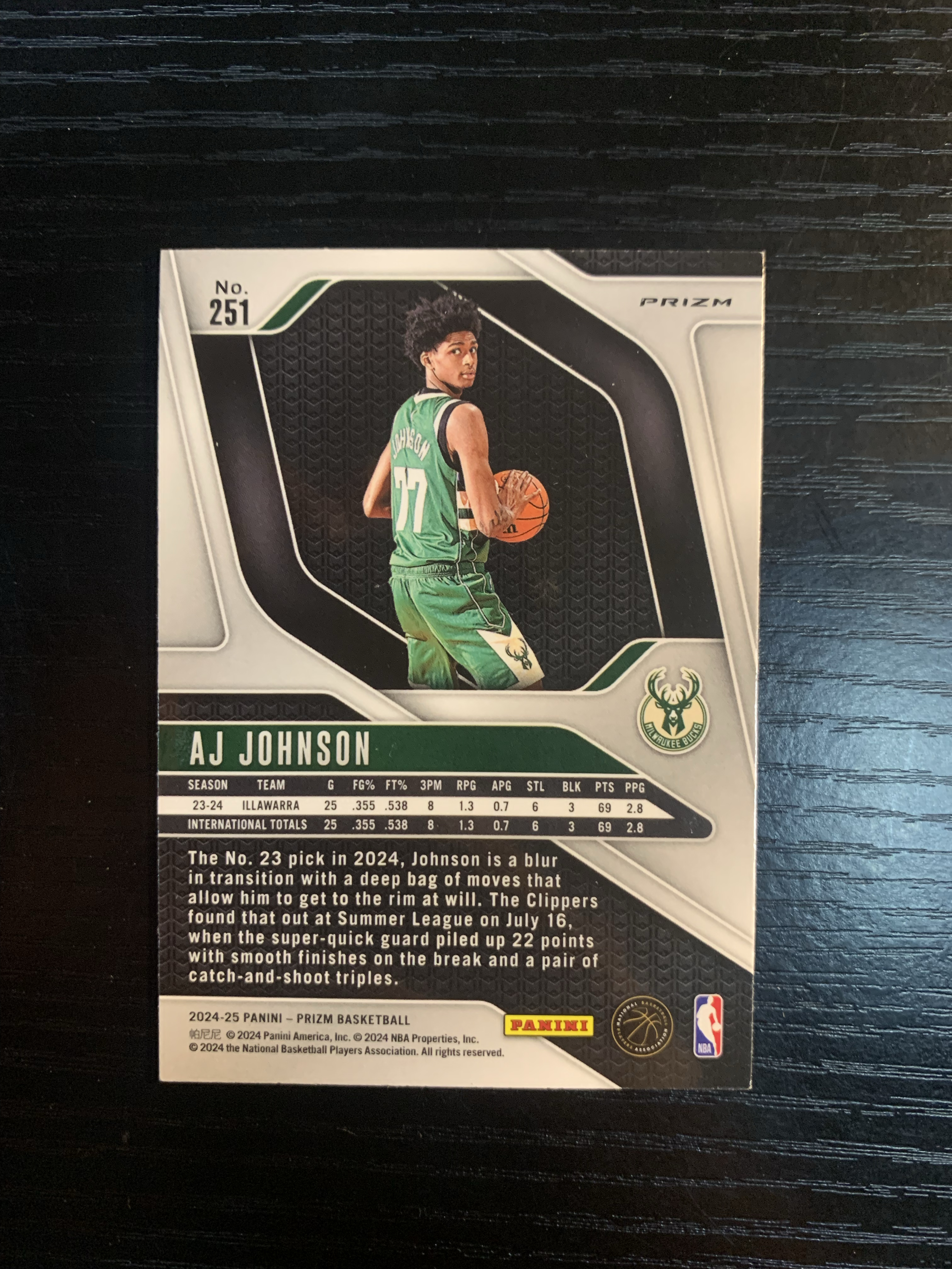 2024-25 Panini Prizm AJ Johnson 新秀RC AJ 约翰逊 雄鹿 奇才 正新秀 银折 专收必备 马尚