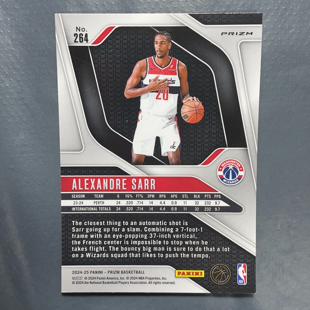 2024-25 Panini Prizm Alex Sarr RC Prizm 亚历克斯 萨尔 RC 新秀 粉碎冰折 奇才