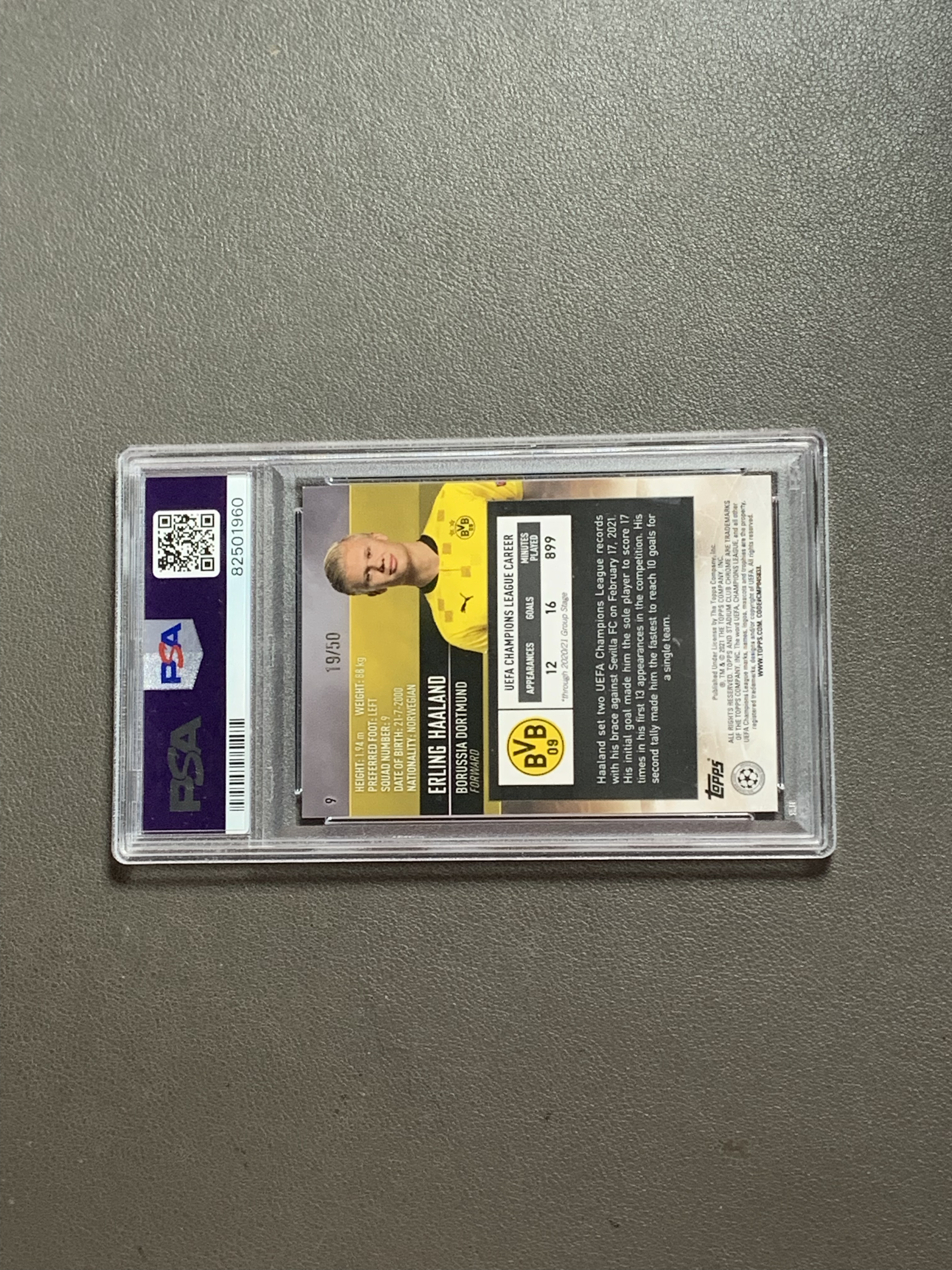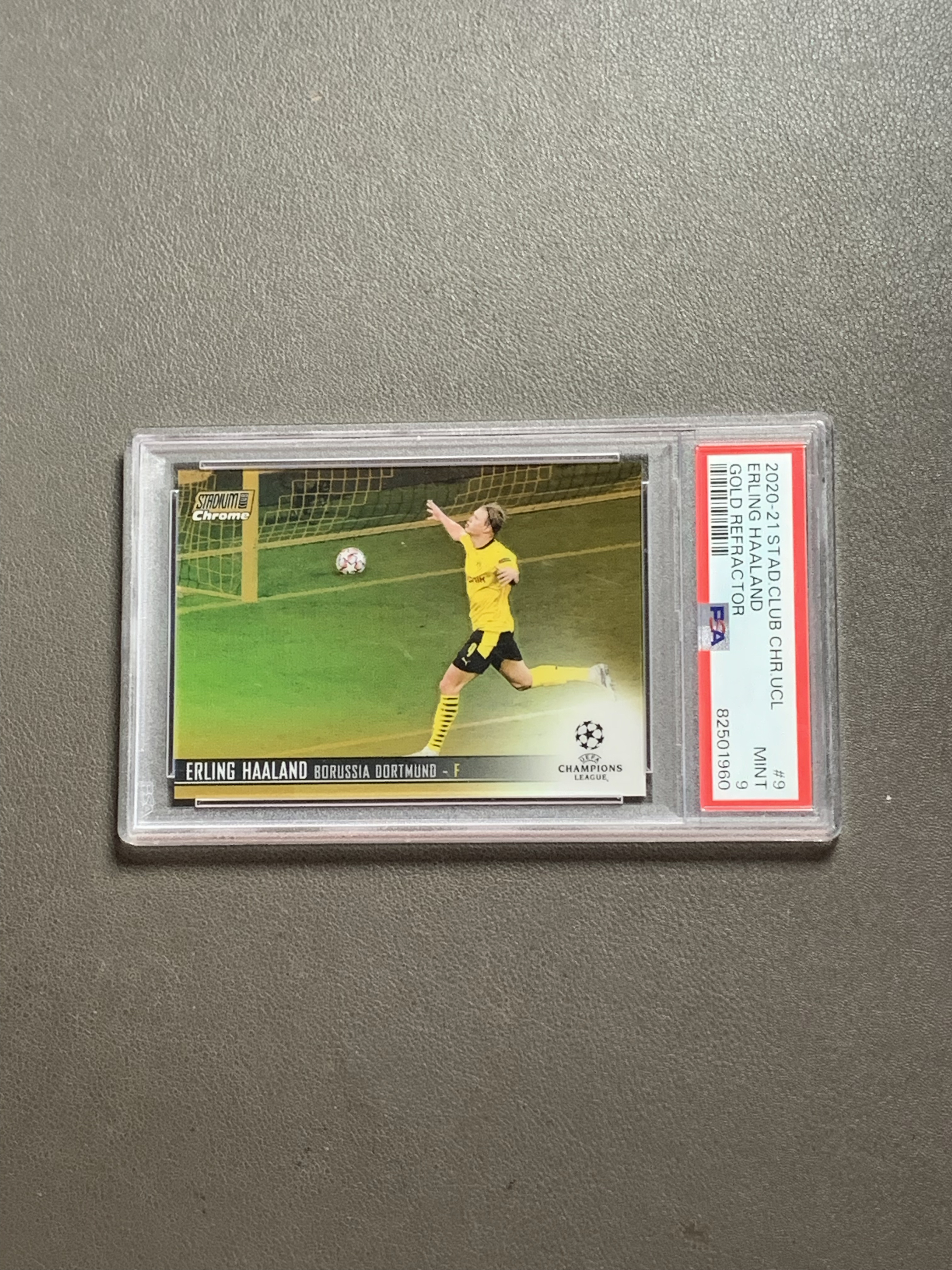 TOPPS 20-21 元年 欧冠 CHROME 竞技场 50编 GOLD 金折 折射 哈兰德 曼城 HAALAND /50 评级psa9分 多特 挪威
