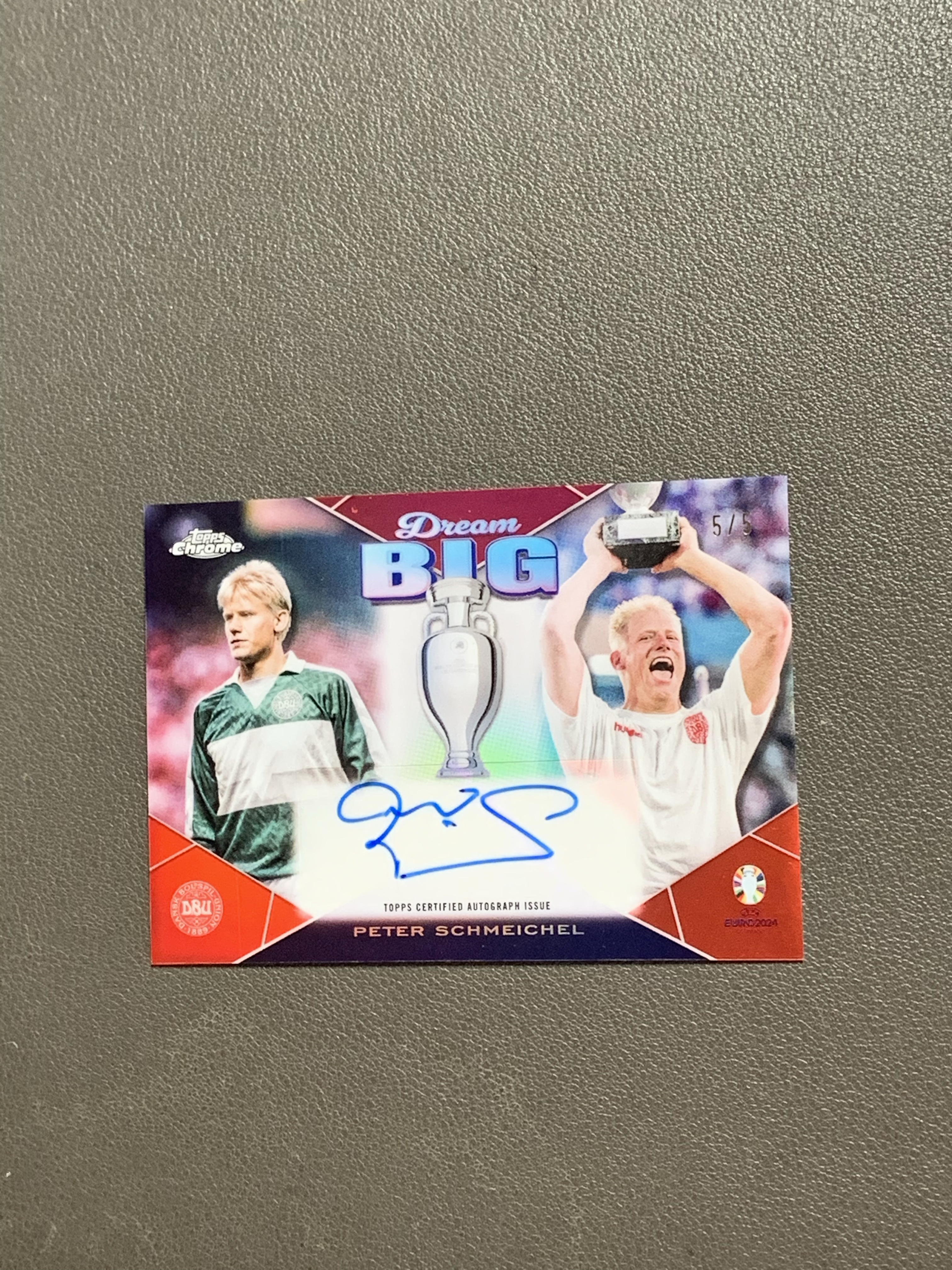 2024 Topps Chrome 欧洲杯 big dream 远大梦想 超大比例 5编 红折 折射 签字 丹麦 舒梅切尔 曼联 传奇门神 5/5 尾编 peter schmeichel