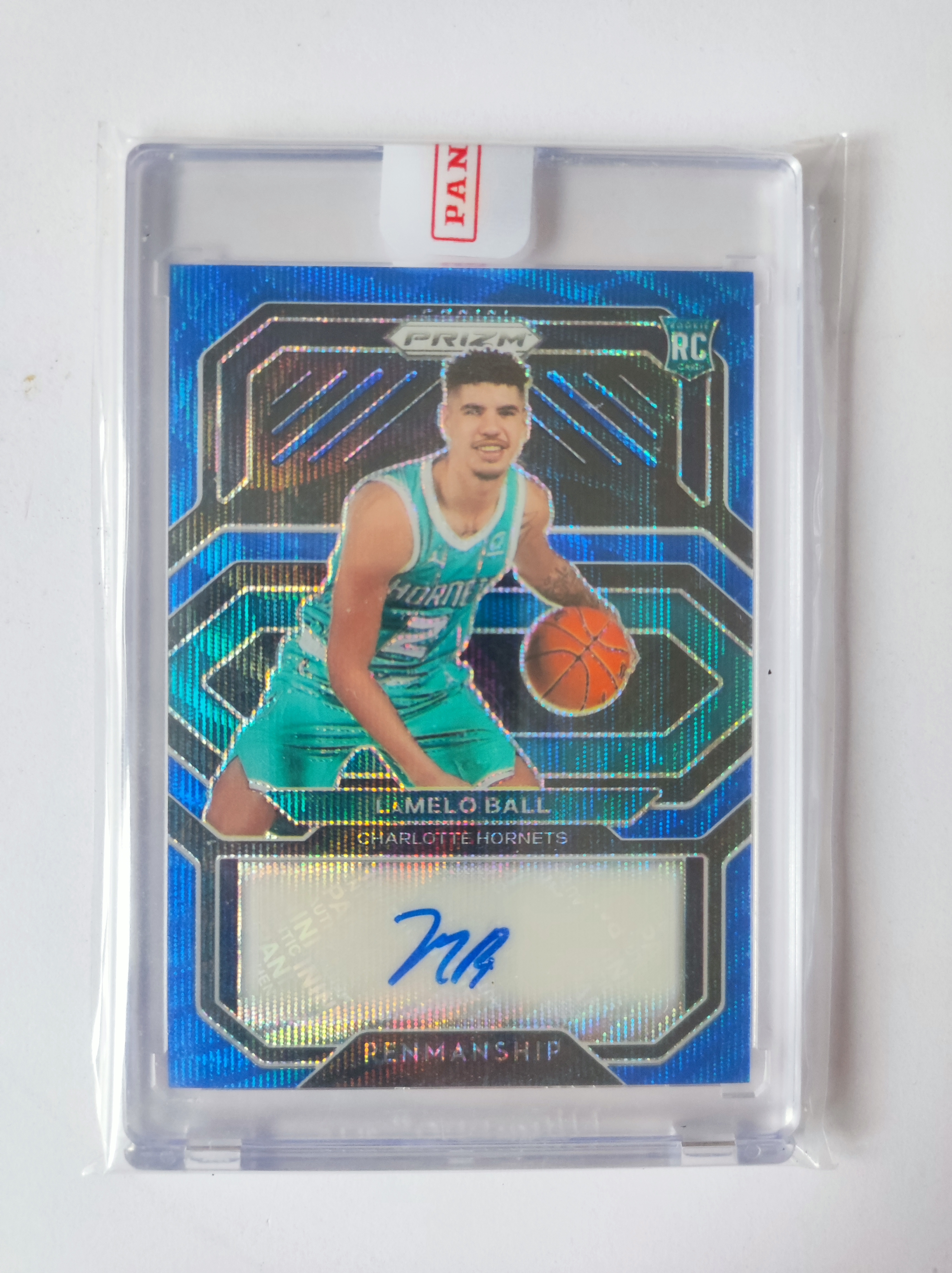 2020-21 Panini Prizm LaMelo Ball 拉梅洛 鲍尔 RC 新秀 签字 签名 原封砖 蓝波纹 折射 黄蜂队 三球 瑕疵看图