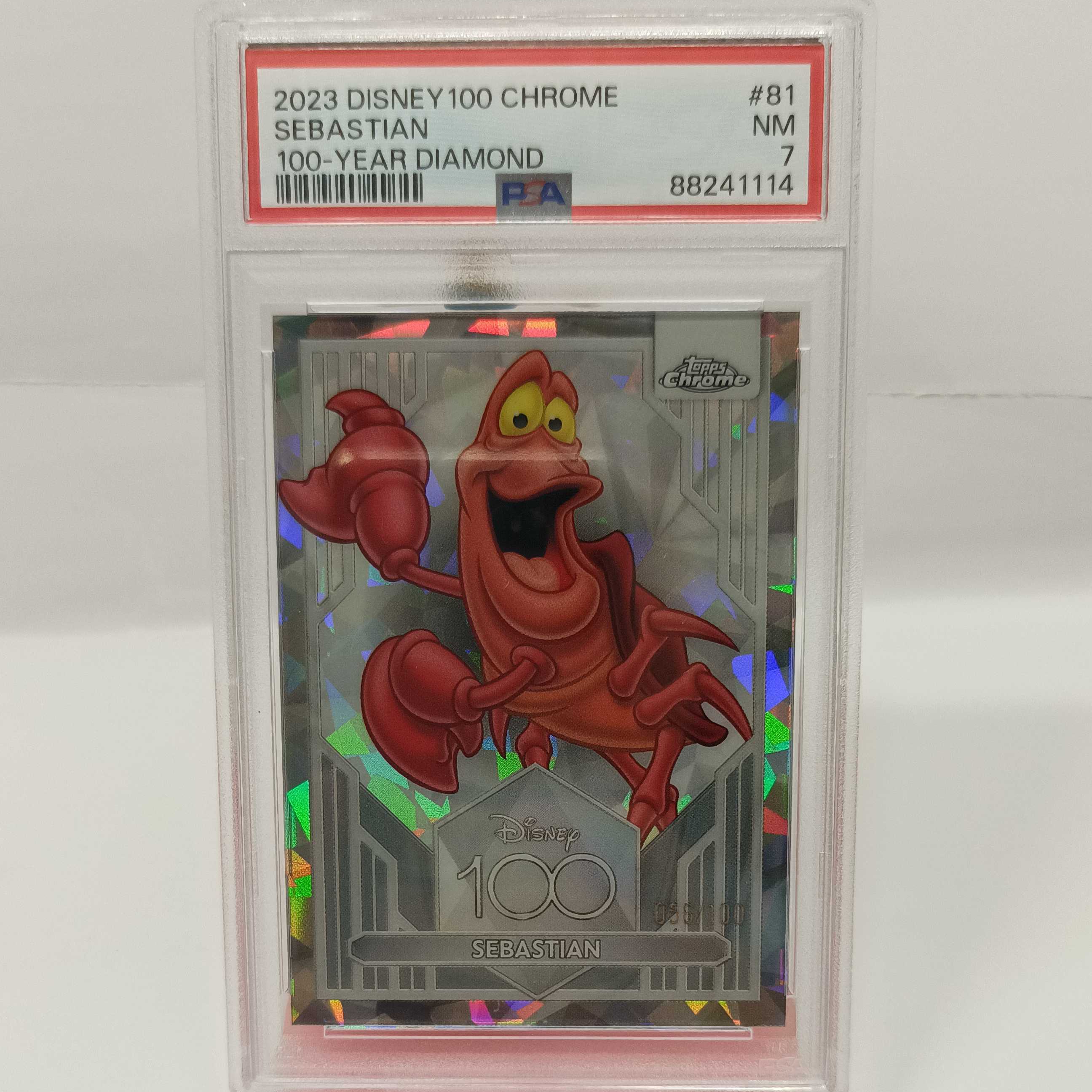 2023 迪士尼100周年Topps Chrome 系列纪念收藏卡 百年钻石版本 木法沙 101忠狗 胡迪 爱丽儿公主 塞巴斯蒂安 编号81 PSA评分7分 056/100 收藏必备