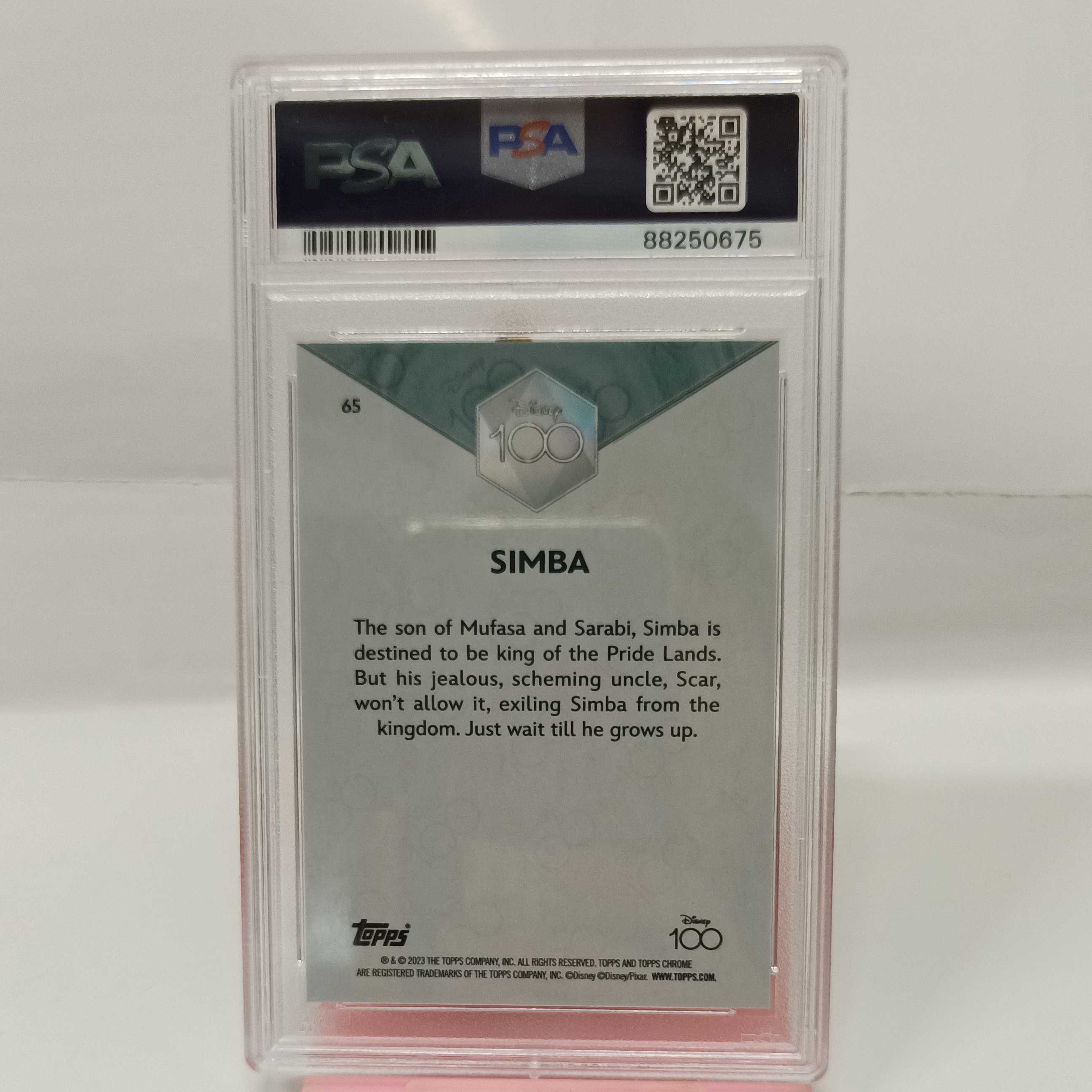 2023 迪士尼100周年 Topps Chrome 系列纪念收藏卡 《公主与青蛙》蒂安娜公主 小鹿斑比 爱丽丝 狮子王辛巴 编号65 PSA评分10分 收藏必备
