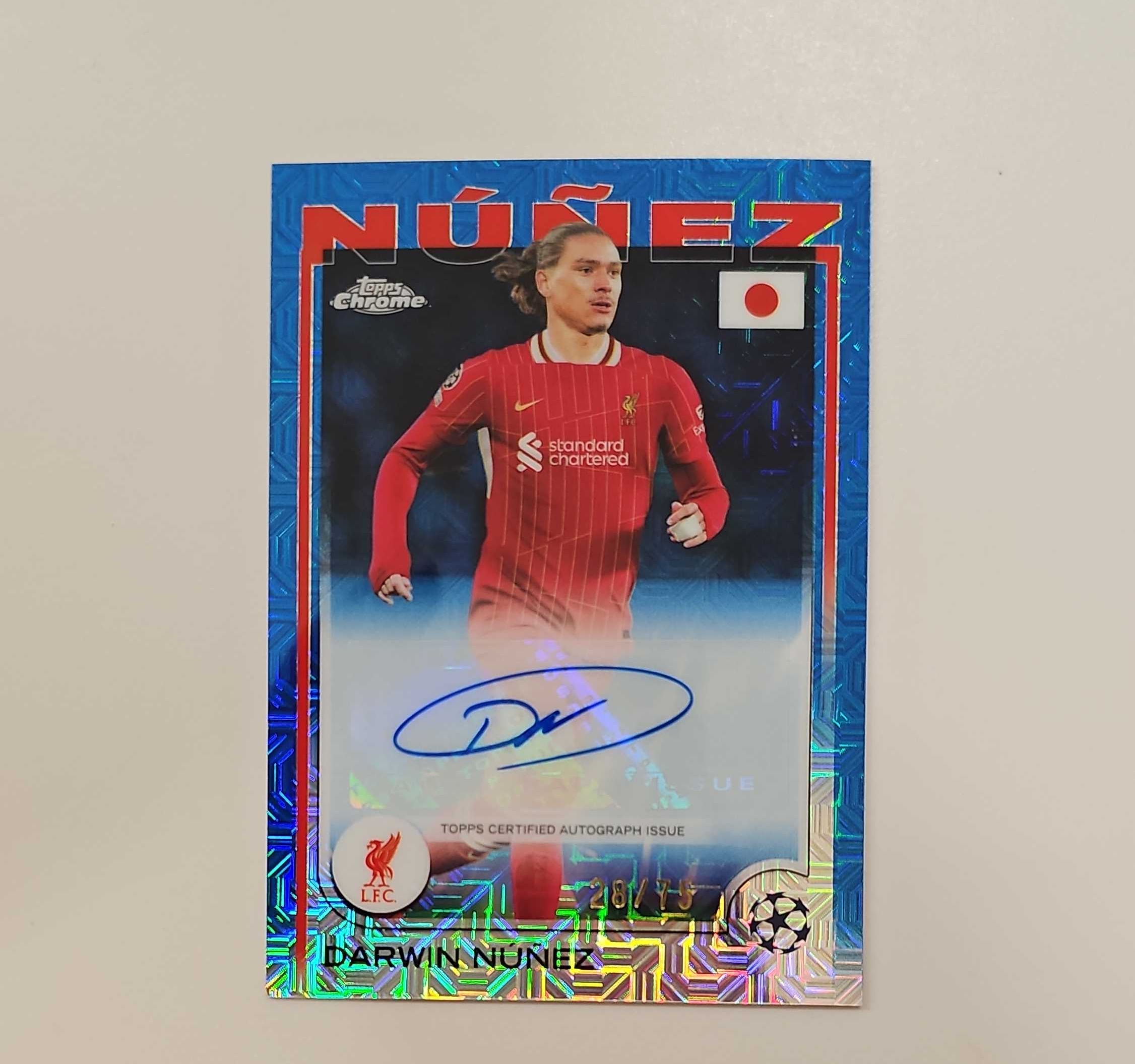 2025 Topps Chrome Darwin Nunez 【幻想代拍】日版樱花 利物浦 达尔文 努涅斯28/75编 蓝mojo折 迷宫折射 签字 实卡精美 收藏必备(奶茶)