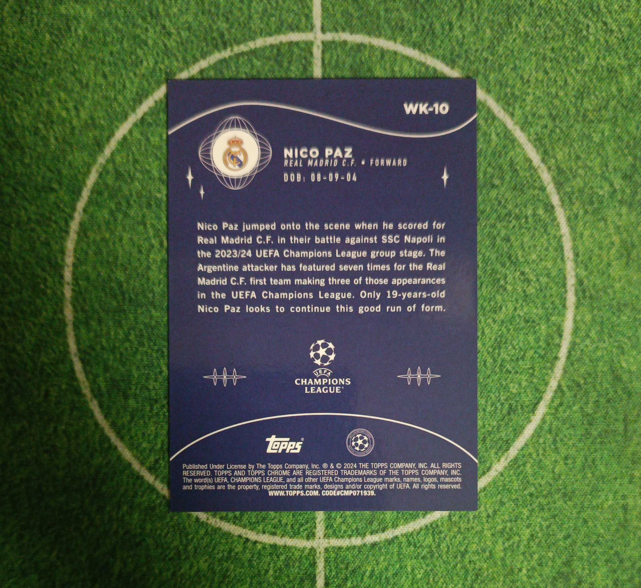 2024 Topps Chrome Nico Paz RC 欧冠 皇马 RC 尼科 帕斯 帕兹 神奇小子 150编 阿根廷助攻梅西 欧冠已进球 科莫 意甲过人王 豪门猎物 卡品如图 细节如图