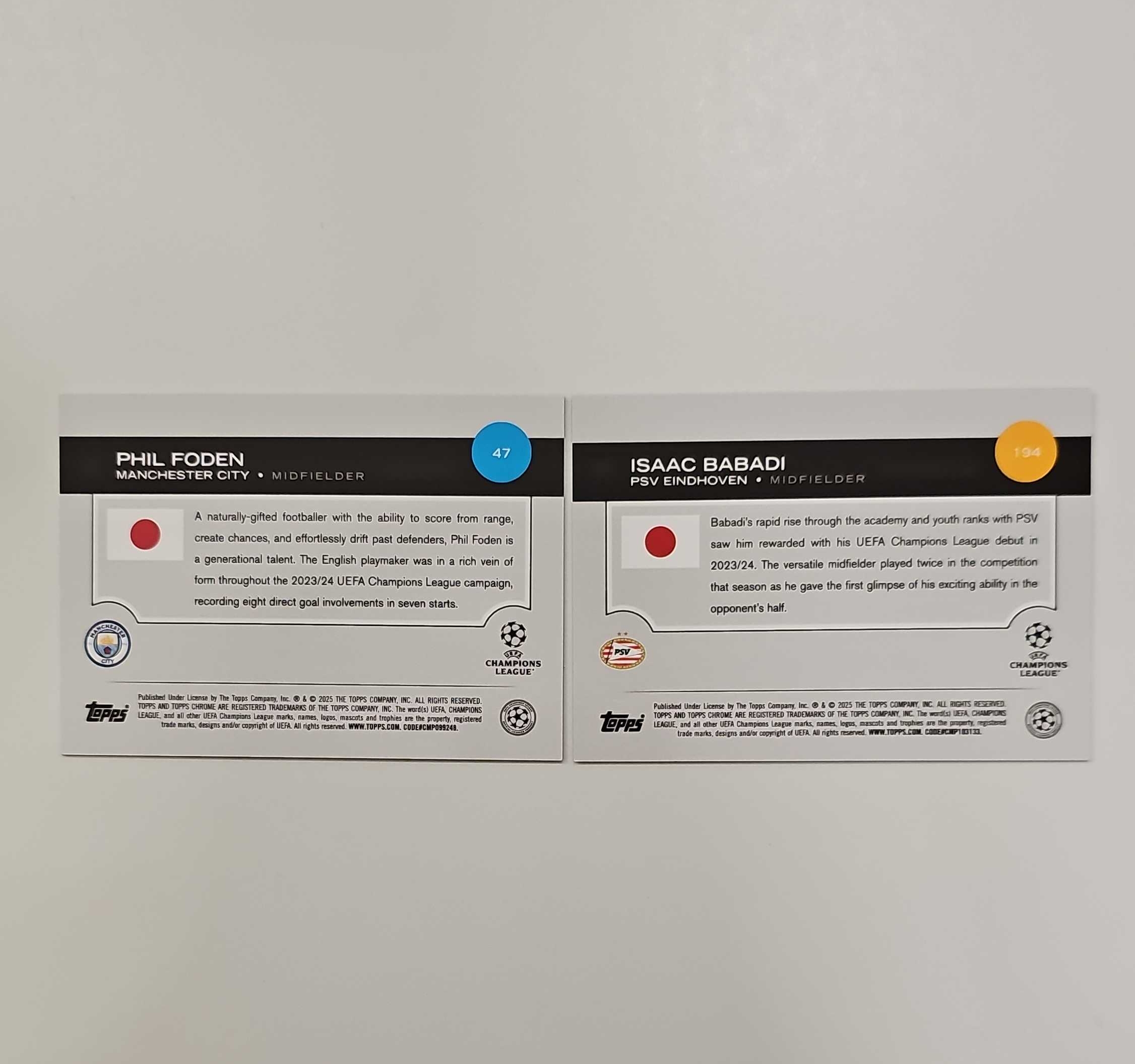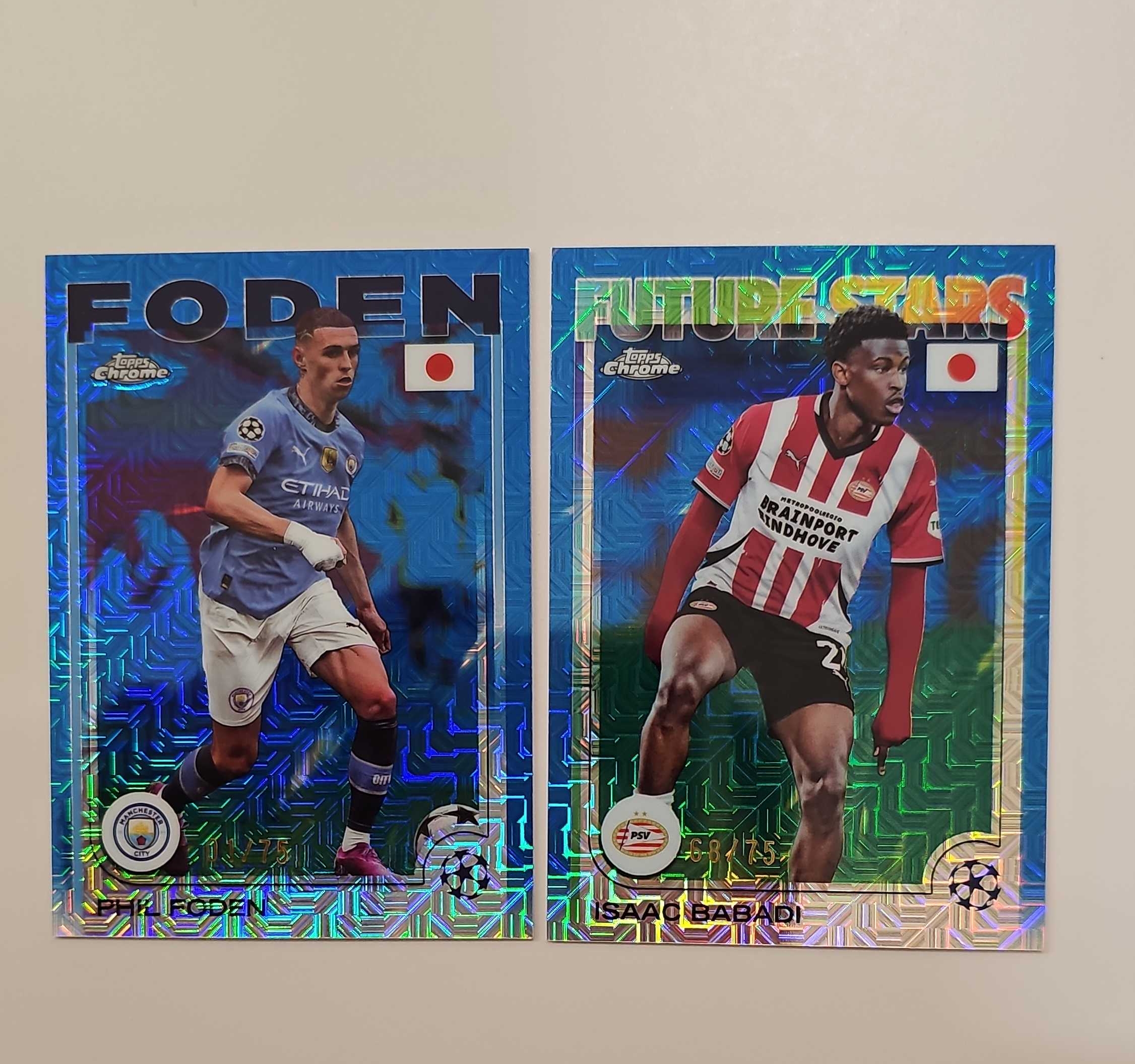 2025 Topps Chrome Phil Foden 【幻想代拍】日版樱花 曼城 埃因霍温 菲尔 福登 巴巴迪 75编 蓝mojo折 迷宫折 两张打包 实卡精美 收藏必备(奶茶)