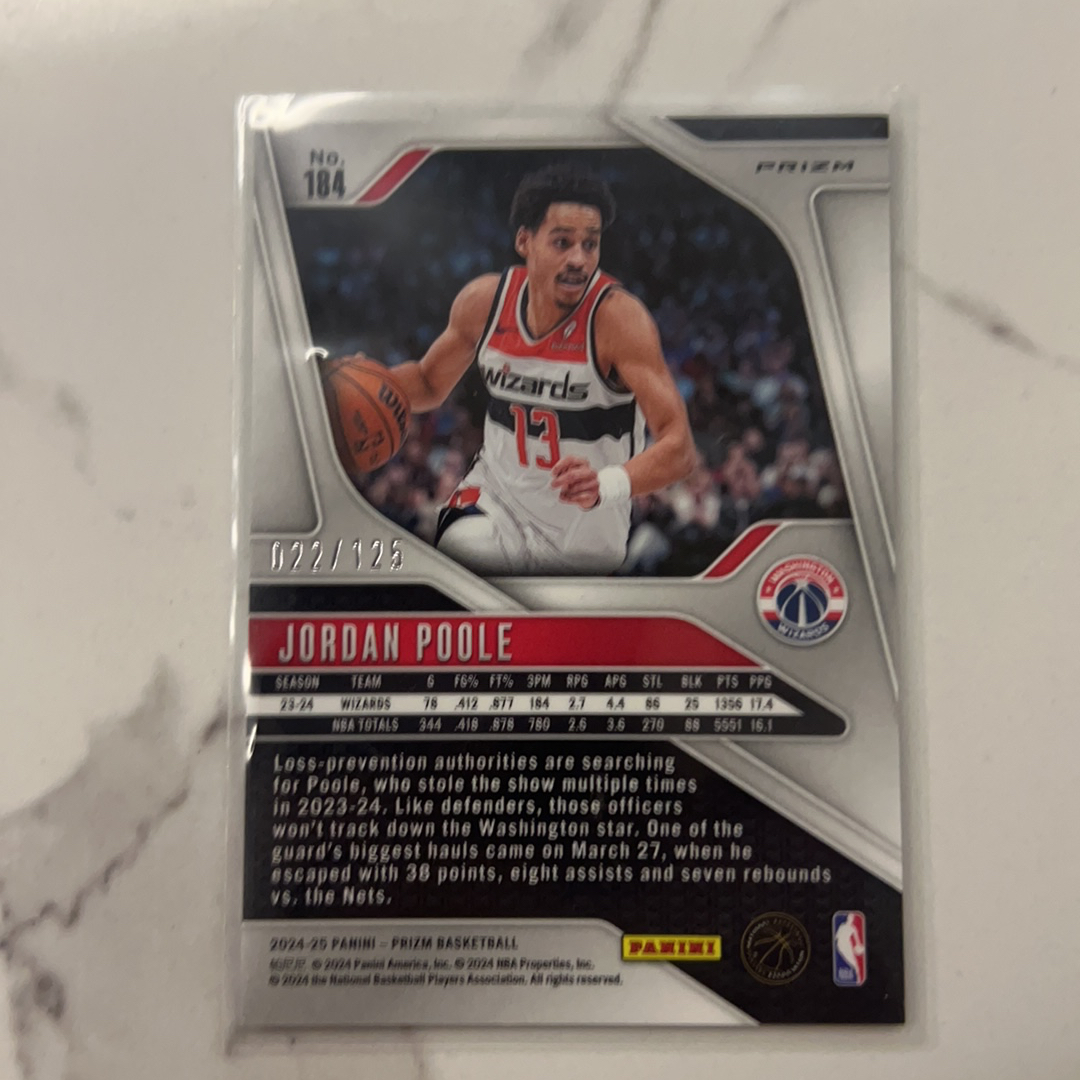 2024-25 Panini Prizm Jordan Poole pz 奇才 乔丹 普尔 /125编 蓝碎冰折 折射