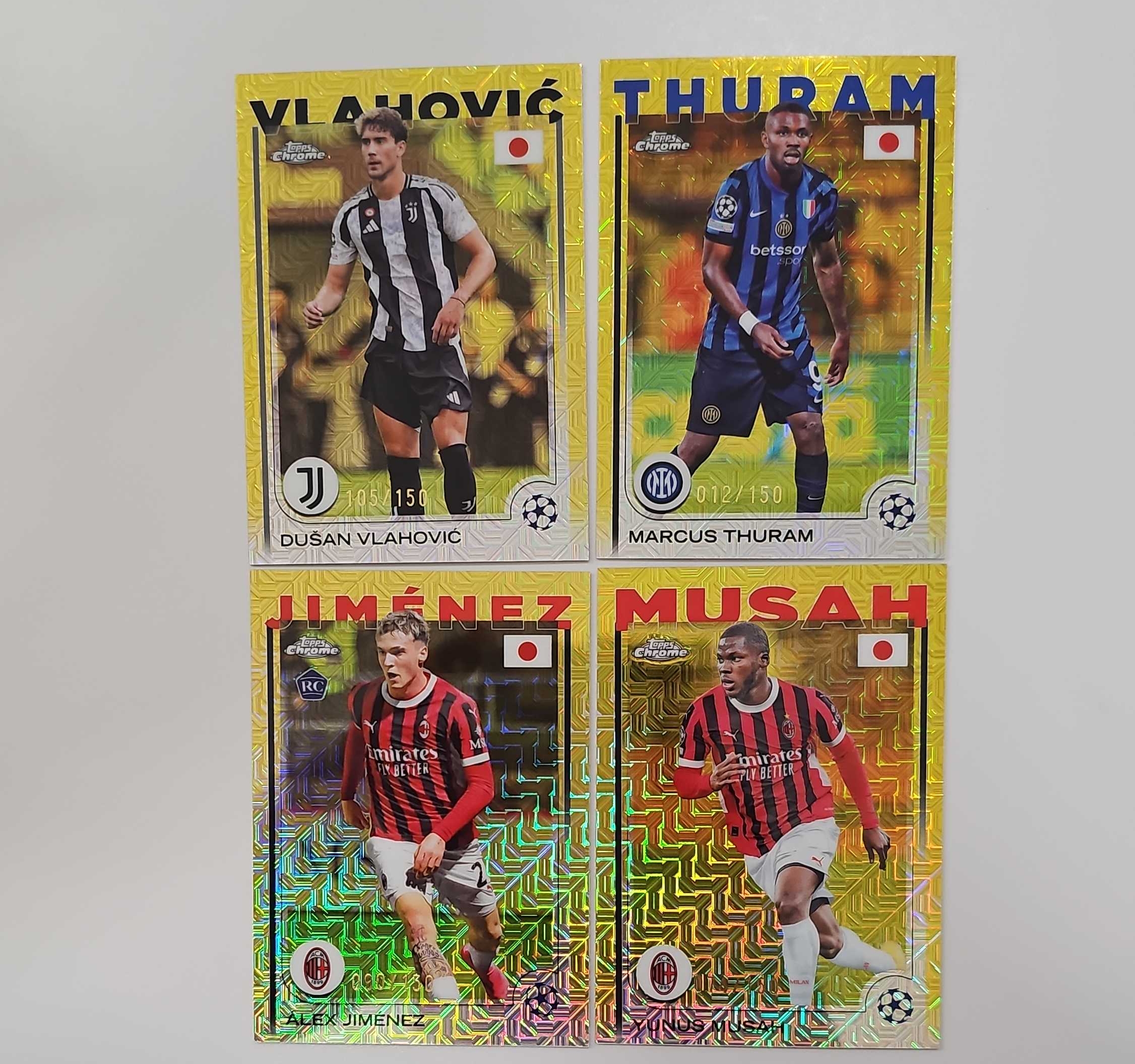 2025 Topps Chrome Dušan Vlahović 【幻想代拍】日版樱花 尤文图斯 国际米兰 AC米兰 弗拉霍维奇 图拉姆 希门尼斯 穆萨 150编 金mojo折 迷宫折 4张打包(奶茶)