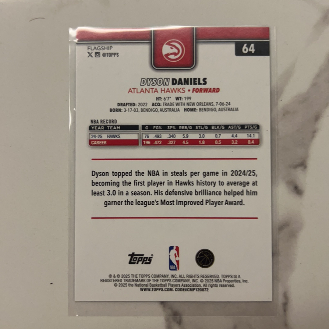 2025-26 Topps Flagship Dyson Daniels 戴森丹尼尔斯 老鹰 008/150编 蓝折 卡品如图
