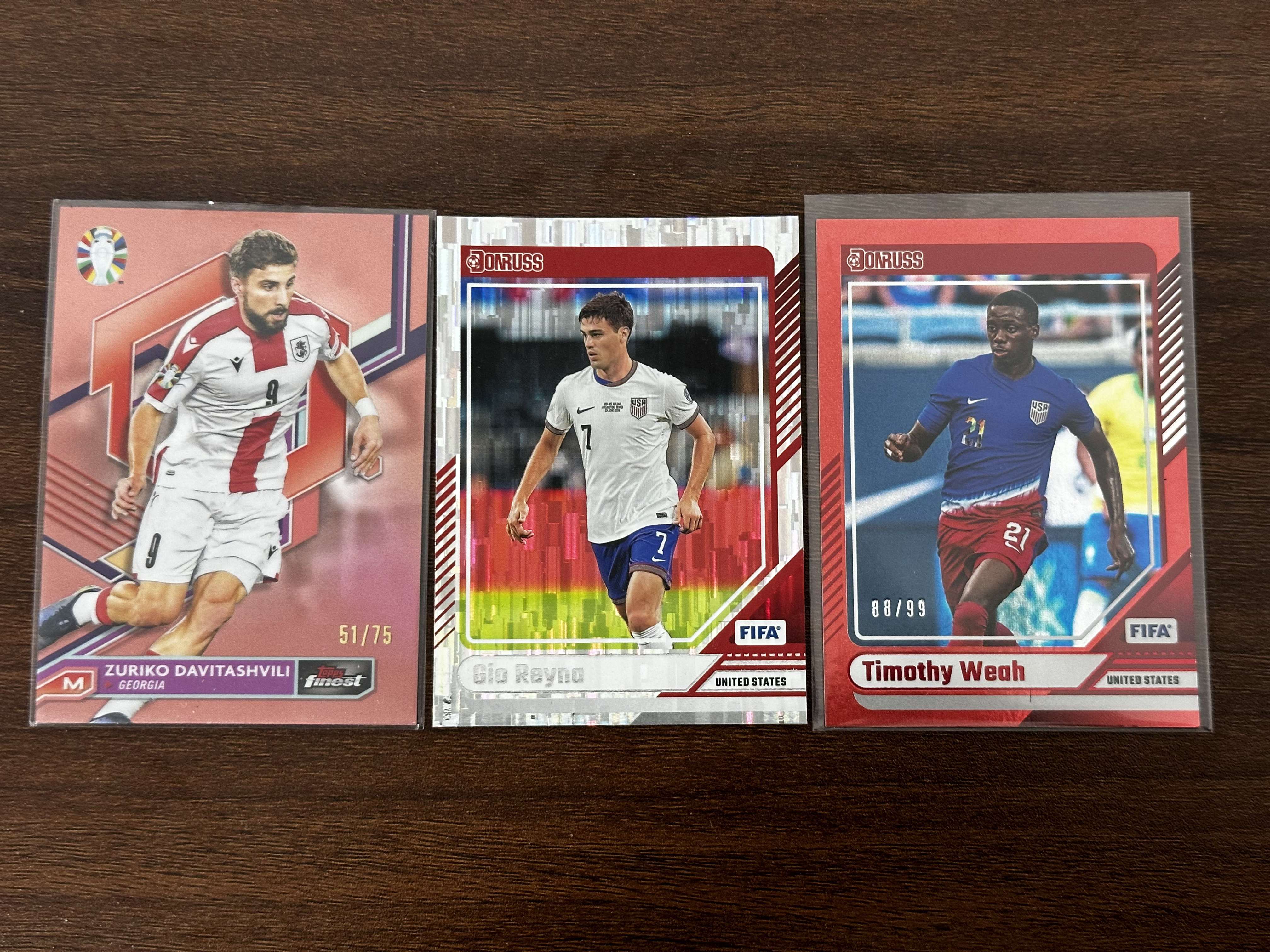 2023 Topps Finest zuriko davitashvili 达维塔什维利 格鲁吉亚 玫瑰金折 51/75编 ,雷纳 折射 ,蒂莫西 维阿 瀑布折 折射 特卡 88/99编 3张卡打包