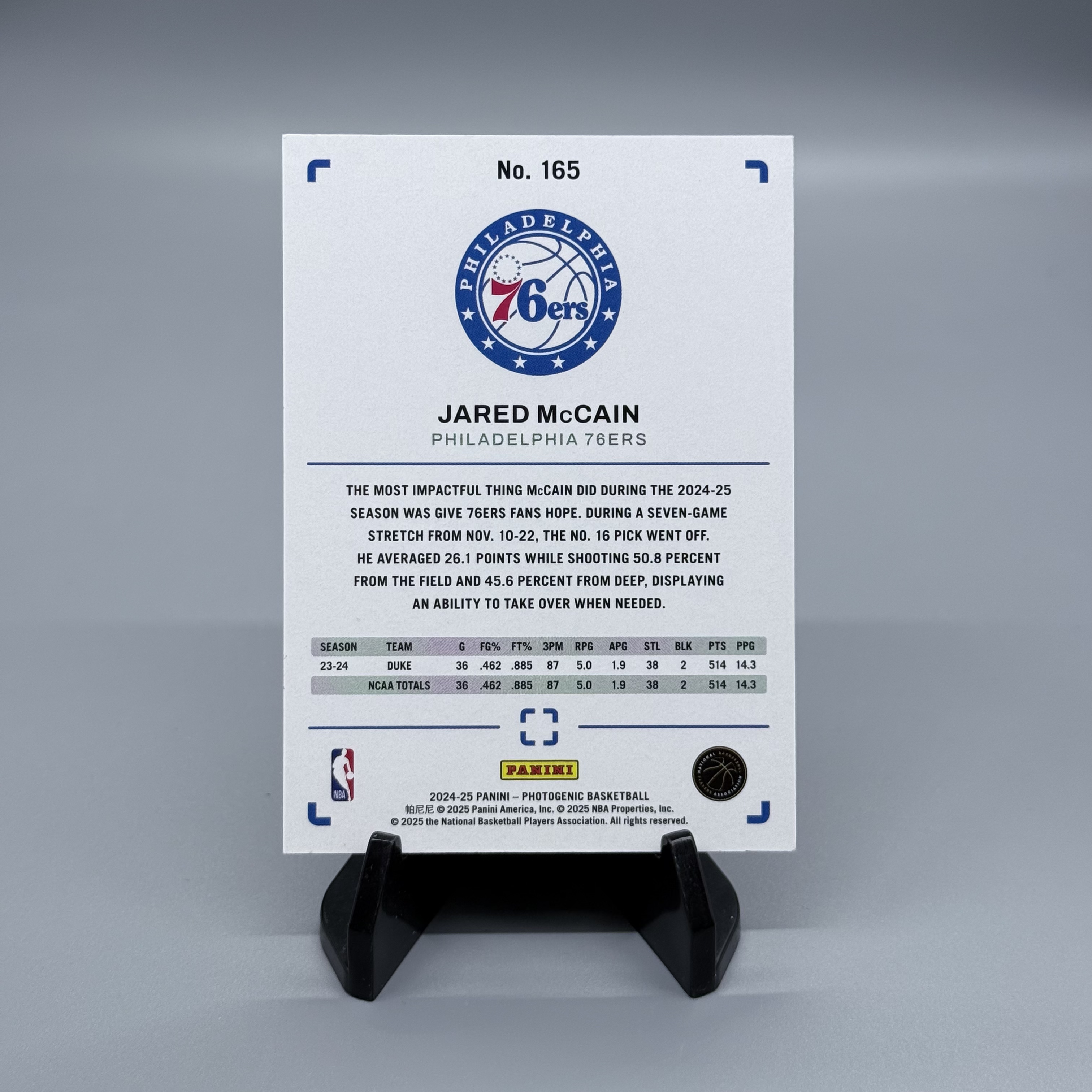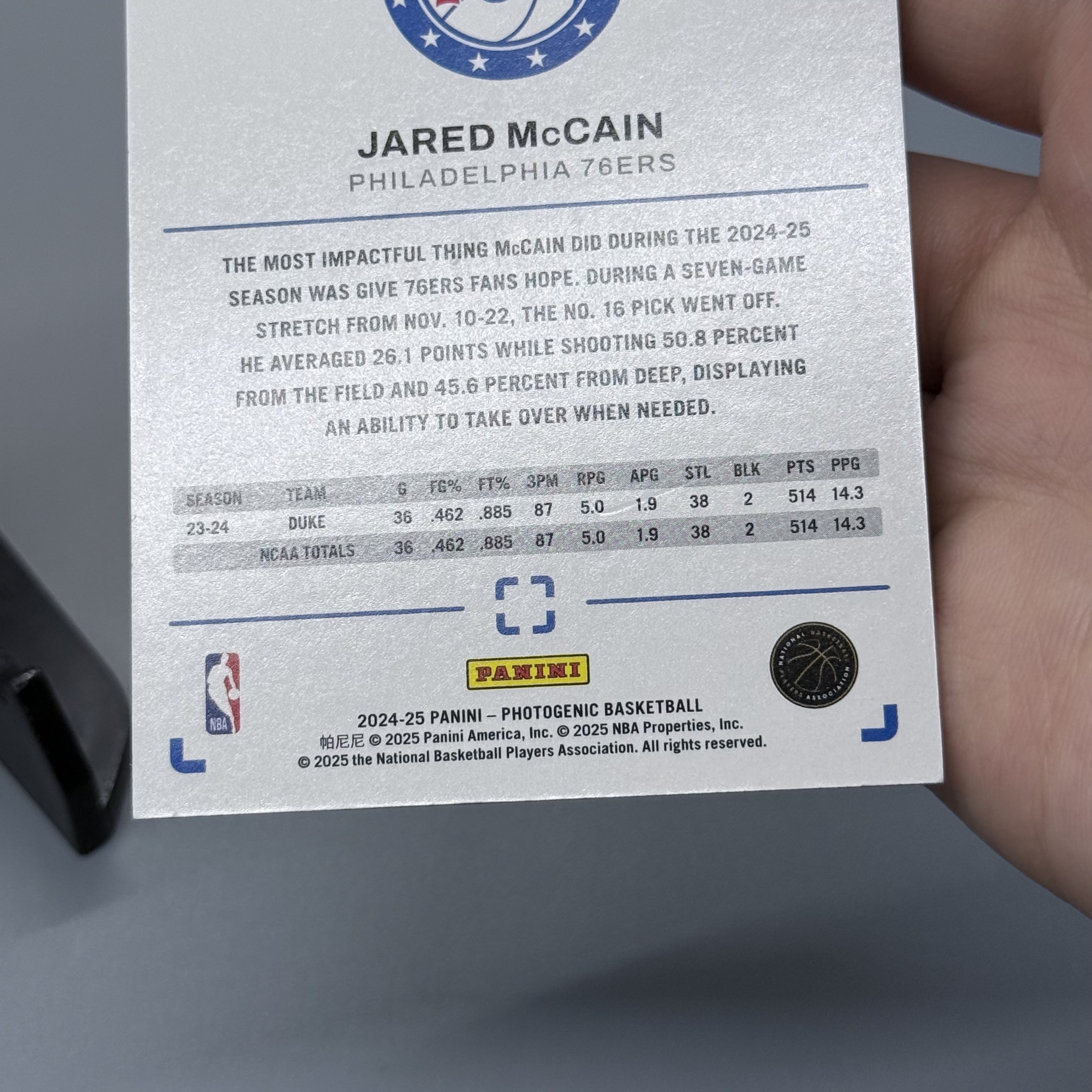 【UD拍卖-旅行号】2024-25 Panini Photogenic 上镜 Jared McCain RC 贾里德 麦凯恩 新秀 76人 base 精美选图 收藏必备 微瑕 卡品如图