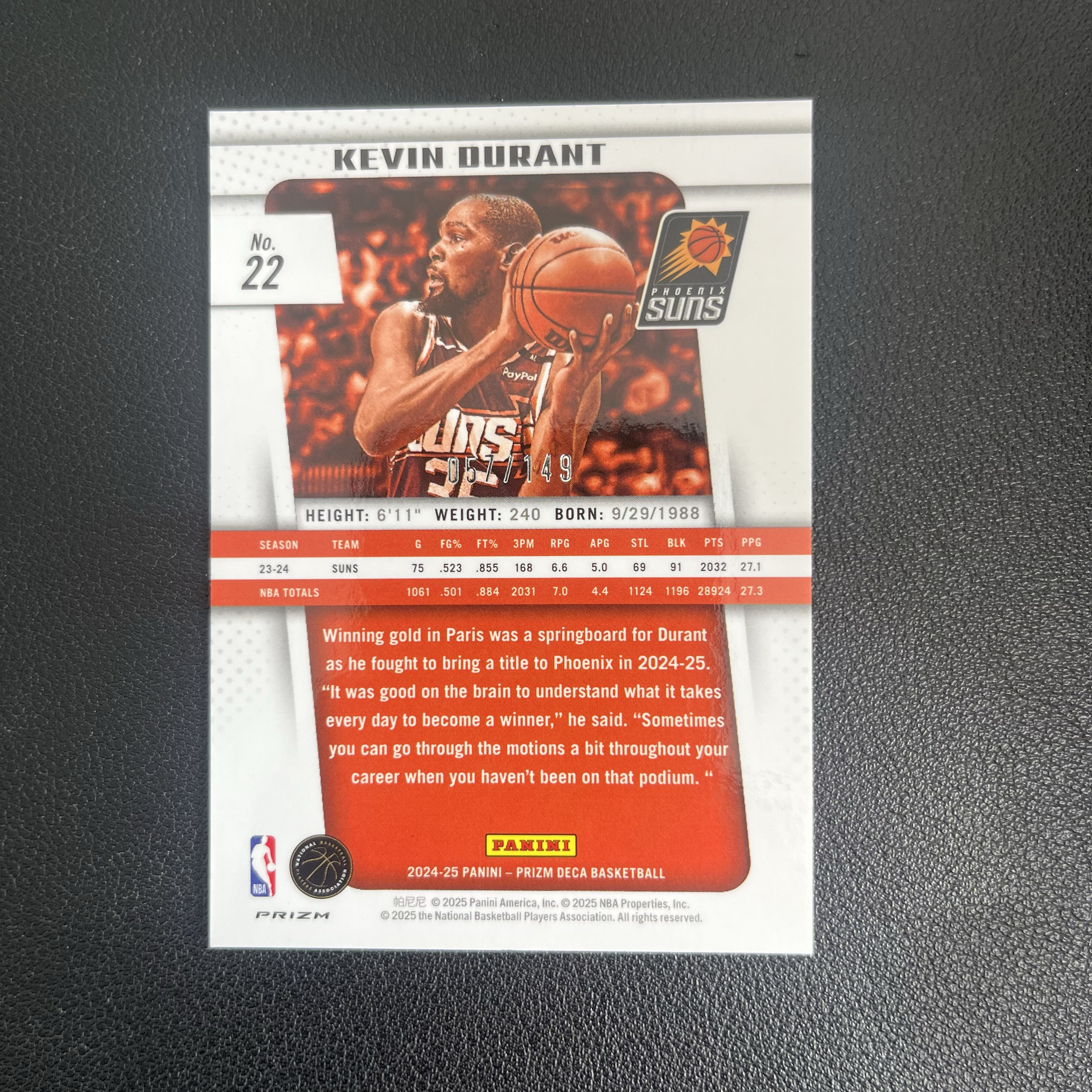 2024-25 Panini Prizm Kevin Durant 死神 凯文 杜兰特 太阳 PZ Deca系列 149编 蓝折 实卡精美 收藏必备 卡品如图(伟)