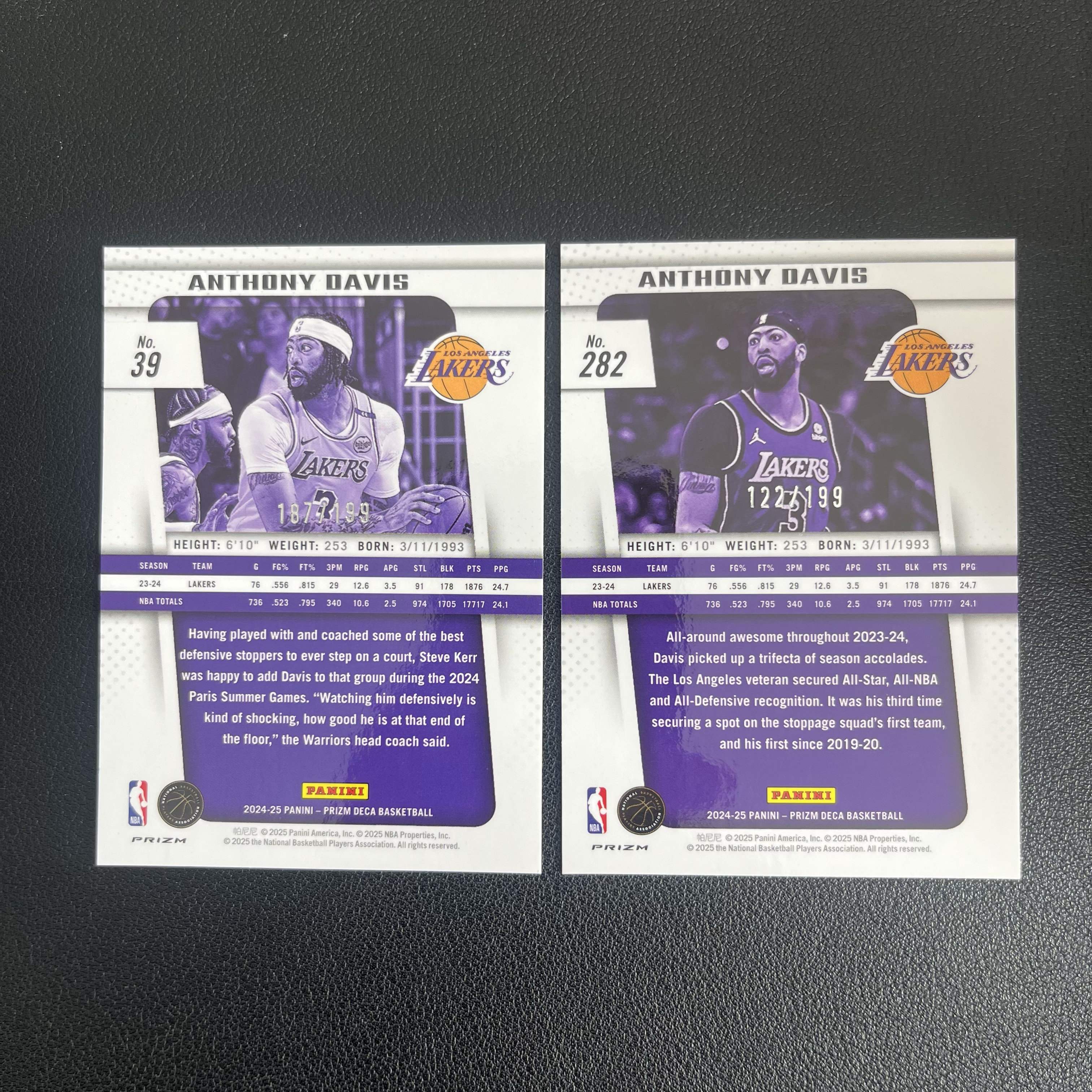 2024-25 Panini Prizm Anthony Davis 安东尼 戴维斯 浓眉 湖人 PZ DECA系列 199编 红折 主客场 两张打包 收藏必备 卡品如图(伟)