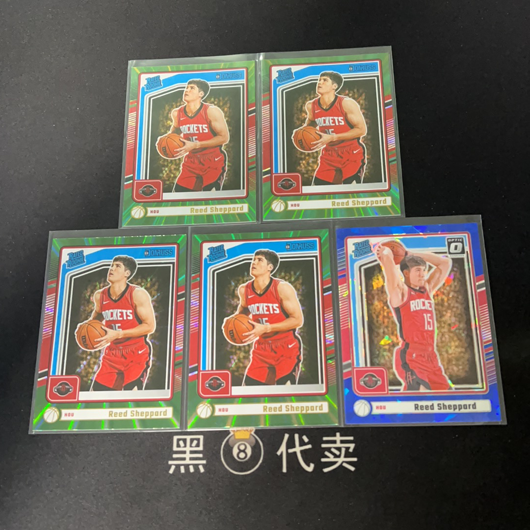 63【黑8代卖】2024-25 Panini Donruss 杜蕾斯系列 Reed Sheppard 里德 谢泼德 RC 新秀 碎冰折 绿佛光折 折射 5张打包出售Lot不保卡品无膜【小红-2】
