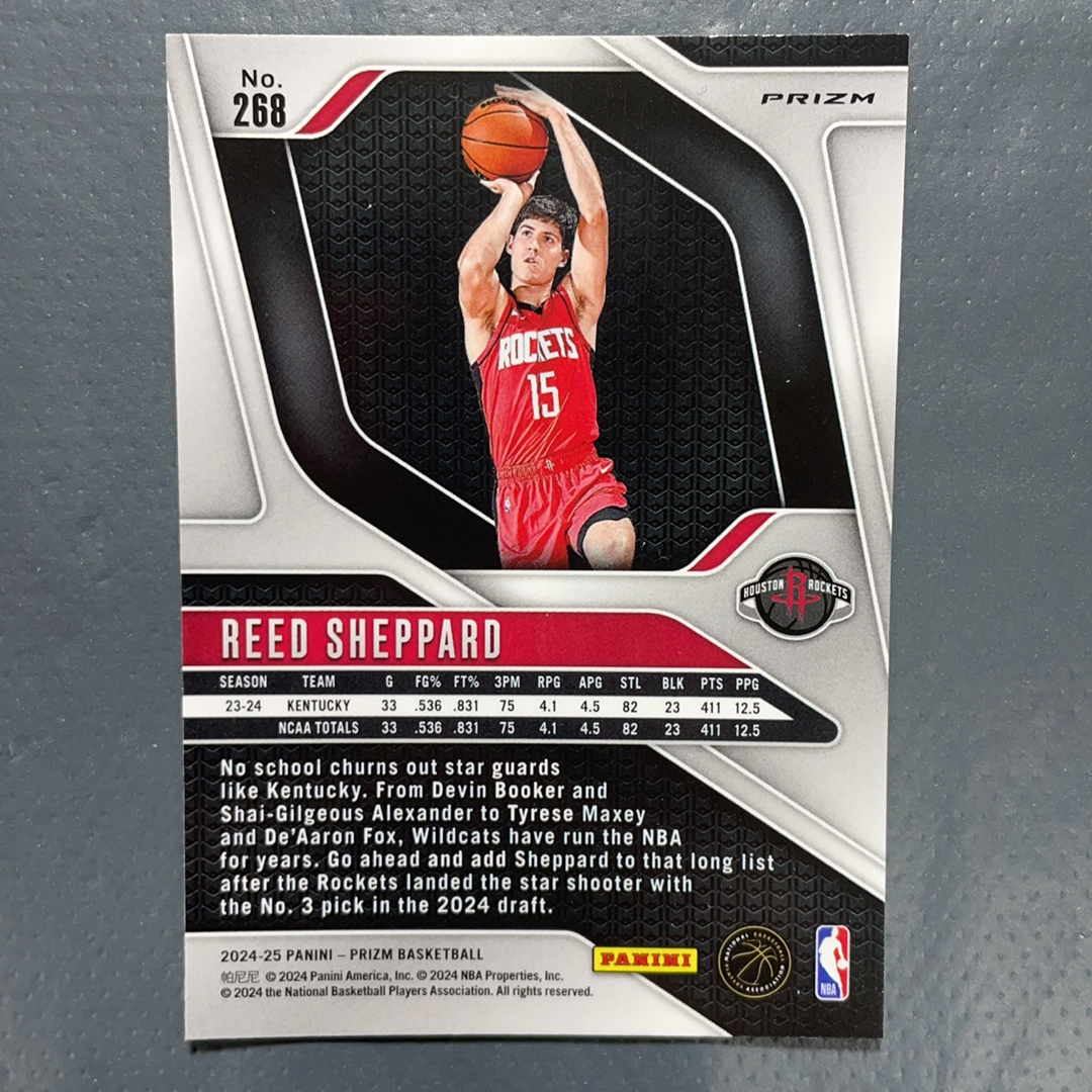 2024-25 Panini Prizm Reed Sheppard RC Prizm 里的 谢泼德 RC 新秀 粉碎冰折 火箭