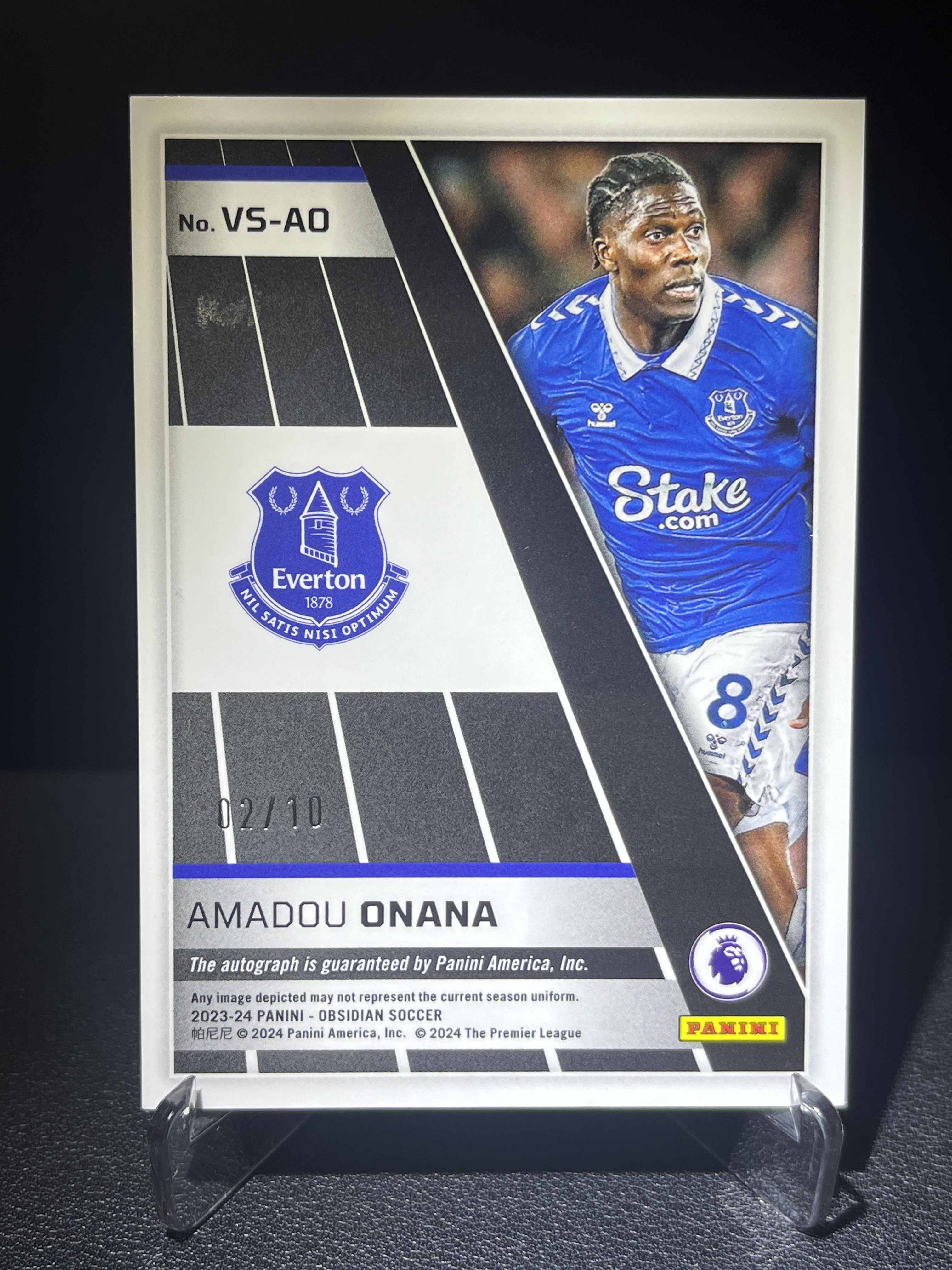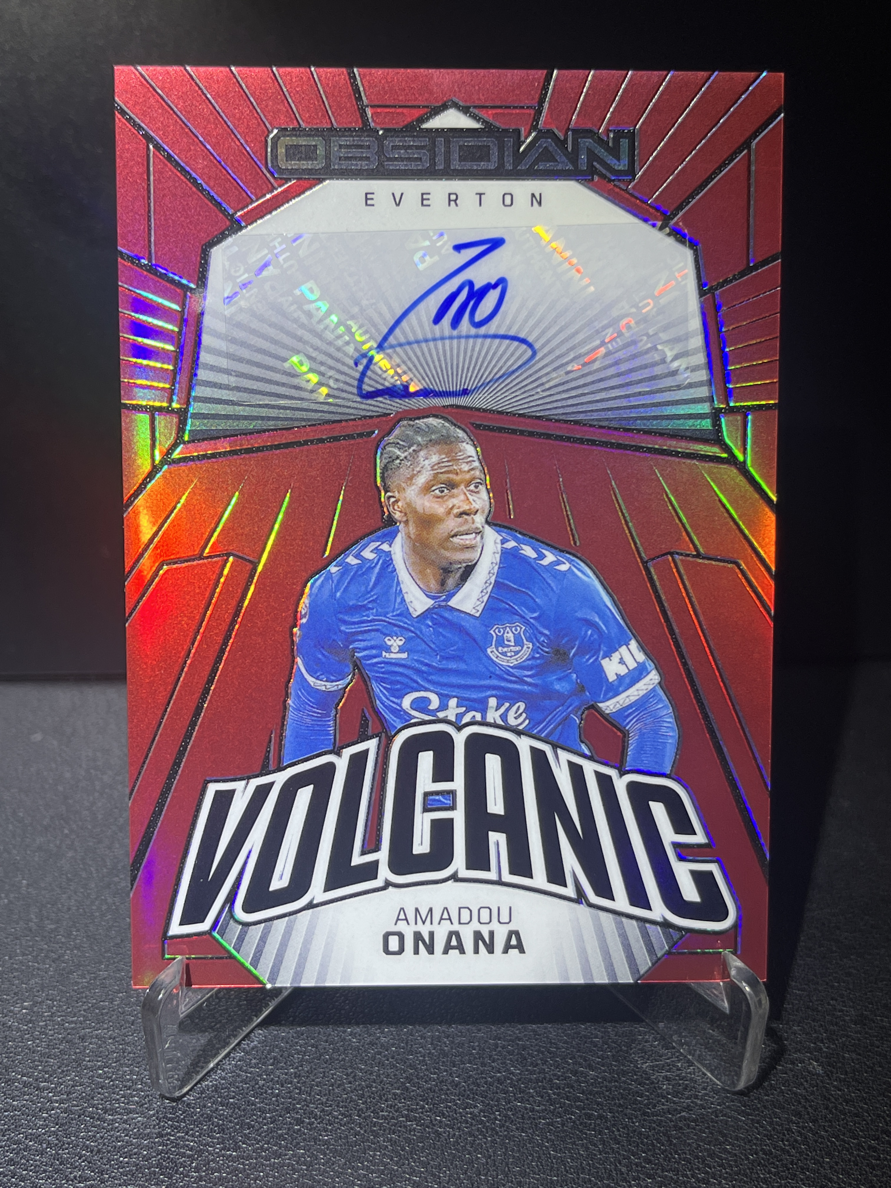 2023-24 Panini Obsidian Amadou Onana 【卡汇拍卖】埃弗顿 阿马杜 奥纳纳 黑曜石 02/10稀有 低编 红折签 火山爆发签 Volcanic 签字 特卡 卡品如图
