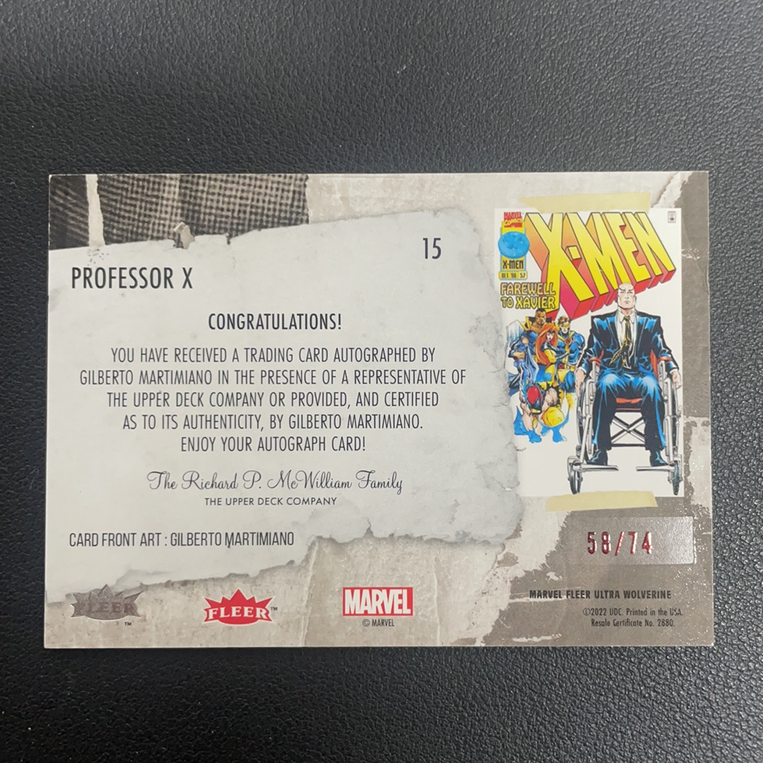 【大满拆】(段)2022Fleer Marvel (MCU) 漫威金刚狼厚卡 professor x x教授 58/74编 大比例 艺术家签字 特卡 Autograph Wolverine 卡品如图