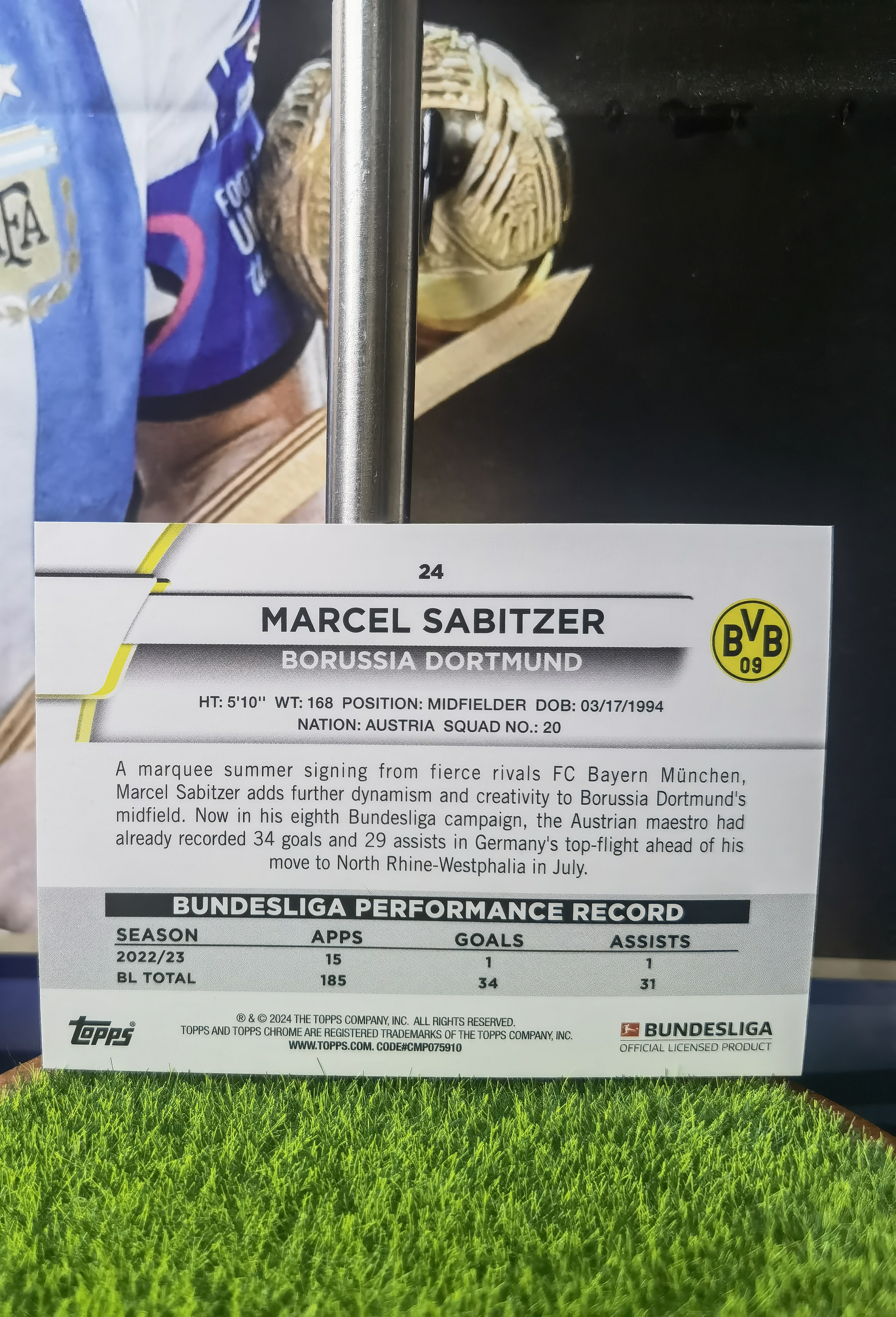 2024 Topps Chrome Marcel Sabitzer 马塞尔 萨比策 德甲chrome 橙折 德国 129/199编 多特蒙德 累计三天
