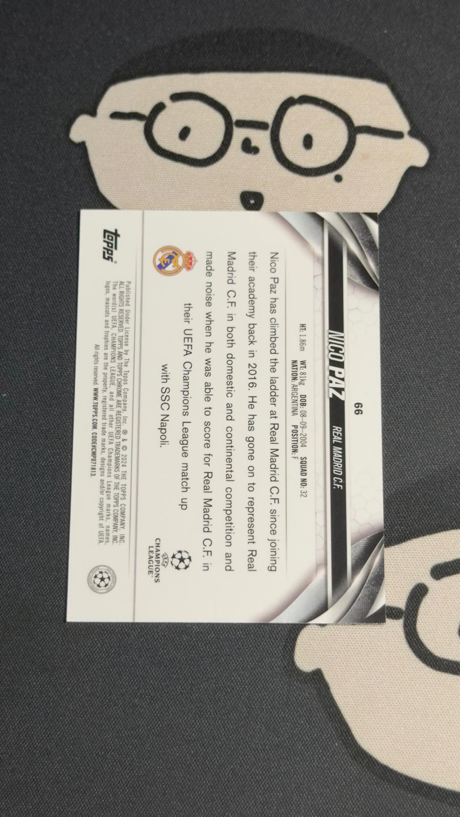 2023-24 Topps Chrome Nico Paz 【HH47】 TC 欧冠 尼科 帕斯 皇马 皇家马德里 /150编 RC新秀 卡品如图 收藏必备 陳冠