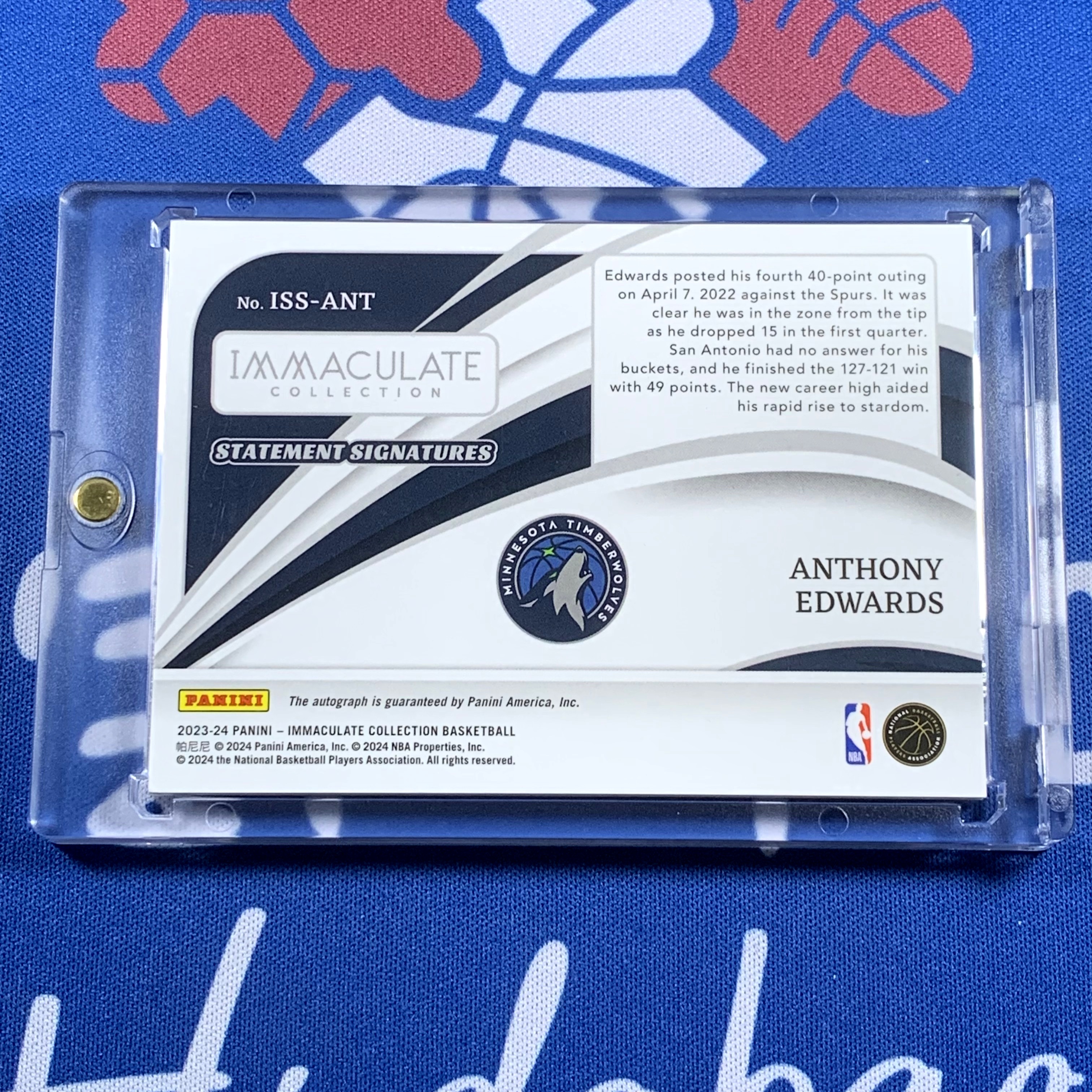 2023-24 Panini Immaculate Anthony Edwards 【海宝】森林狼 爱德华兹 华子 10编 Statement 宣告 宣言签字卡 卡签 轻印 未来可期 收藏必备【WE】
