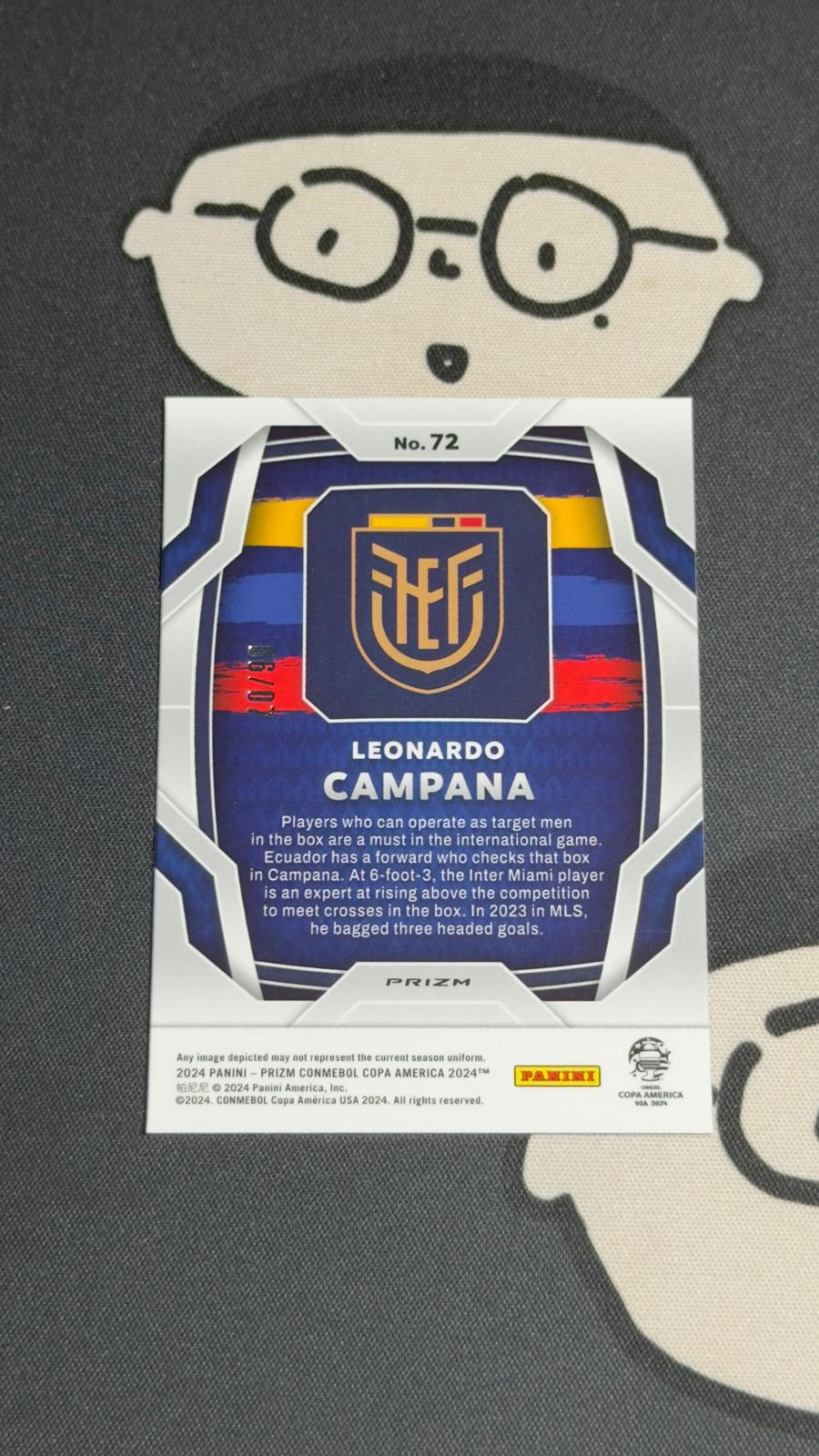 2024 Prizm COPA America Leonardo Campana 【HH47】 帕尼尼 Prizm 美洲杯 莱昂纳多 坎帕纳 厄瓜多尔 新秀rc /7编 蓝simmer折 卡品如图  收藏必备 DW